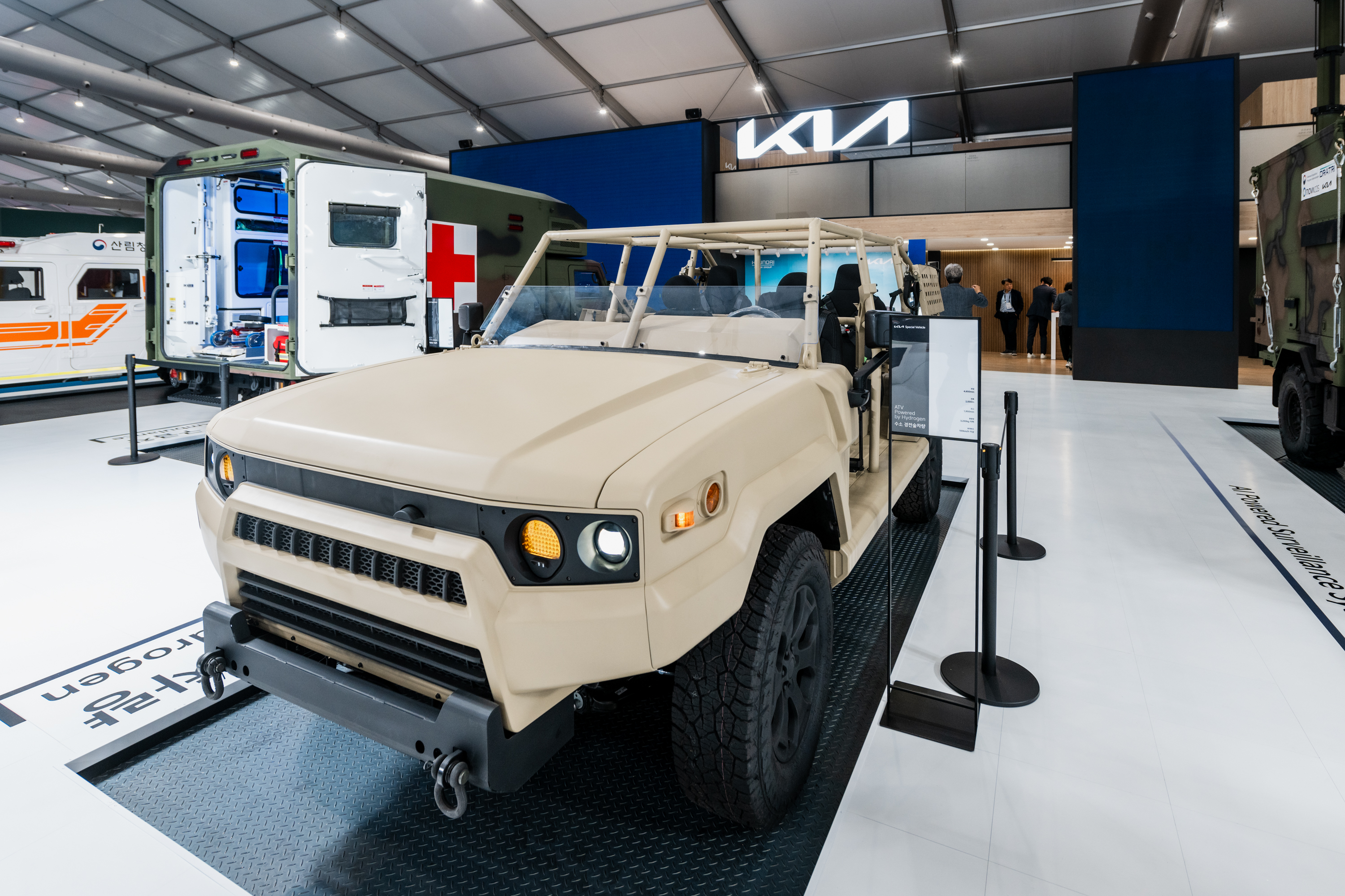 In this exhibition, Kia will unveil the real life of the ' Kia Medium Tactical Vehicle 6x6 - KMTV' and 'Hydrogen Light All Terrain Vehicle - ATV' for the first time in the world.