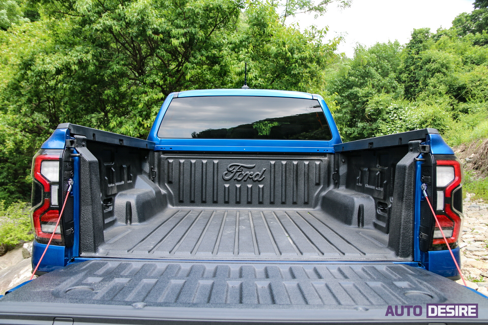 적재함의 경우 와일드트랙과 동일하게 좀 더 평평해진 베드라이너가 적용되는데, 랩터가 리어 글라스 하단 공간 구성에서 약간의 손실이 있고, 후륜에 리프 스프링 대신 오프로드용 퍼포먼스 서스펜션을 적용해 최대 적재 하중이 300kg로 줄어드는 점을 감안할 필요가 있다.