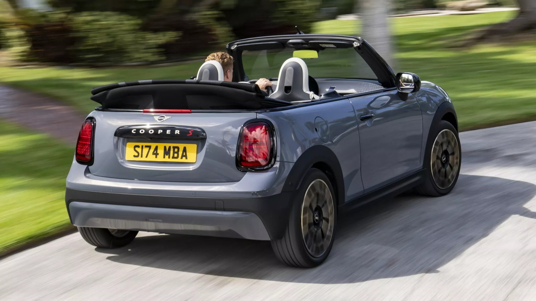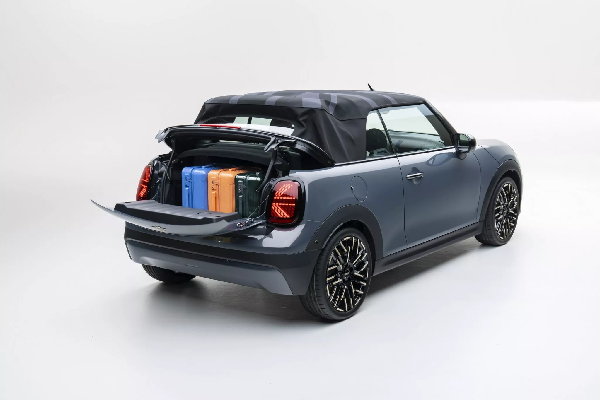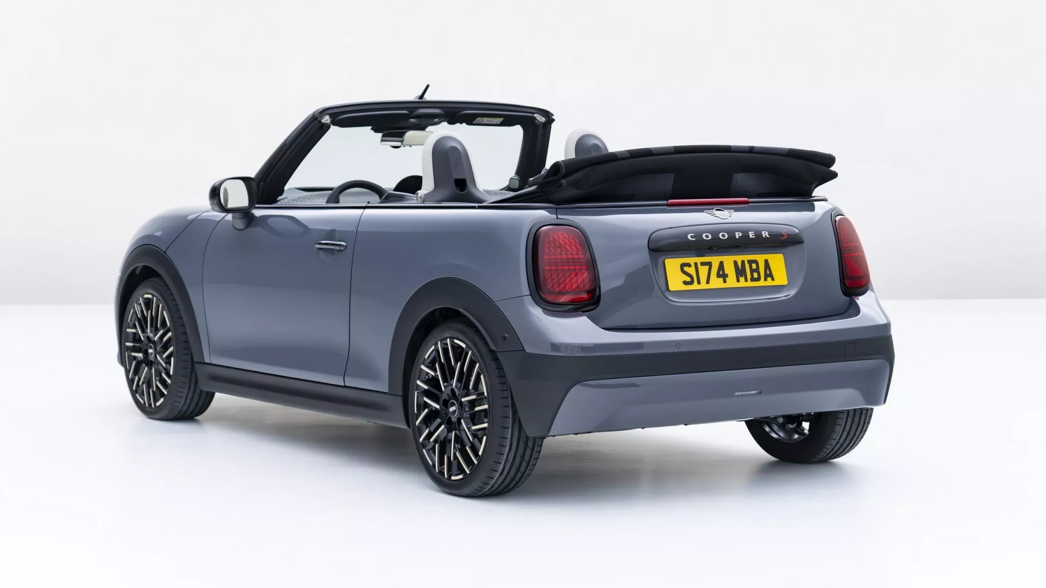 다만 후면에서는 신형 미니 해치백과 다르게 기존 3세대 미니 컨버터블의 금형을 이어 받아 부채꼴의 날렵한 형태의 리어 램프가 아닌 3세대 미니 컨버터블과 동일한 외곽 라인의 리어 램프를 적용하되, 새로운 디지털 패턴이 적용되었고, 앞 범퍼와 마찬가지로 뒤 범퍼도 미니멀하게 노출된 머플러 팁을 삭제하고 깔끔하게 바디 컬러 플레이트만 적용했다. 소프트탑 상부에는 유니언잭 디자인을 적용했다.