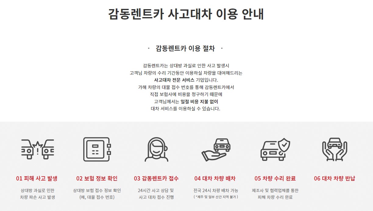 세종사고대차 렌트카 '감동렌트카' 주요 서비스 항목