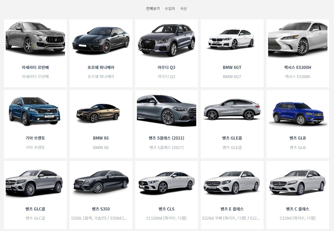 1) 출고 2년 미만, 금연, 신차급 풀옵션 차량으로 국산 차량과 함께 벤츠, BMW, 아우디, 레인지로버 등 수입 플래그십 차량 보유