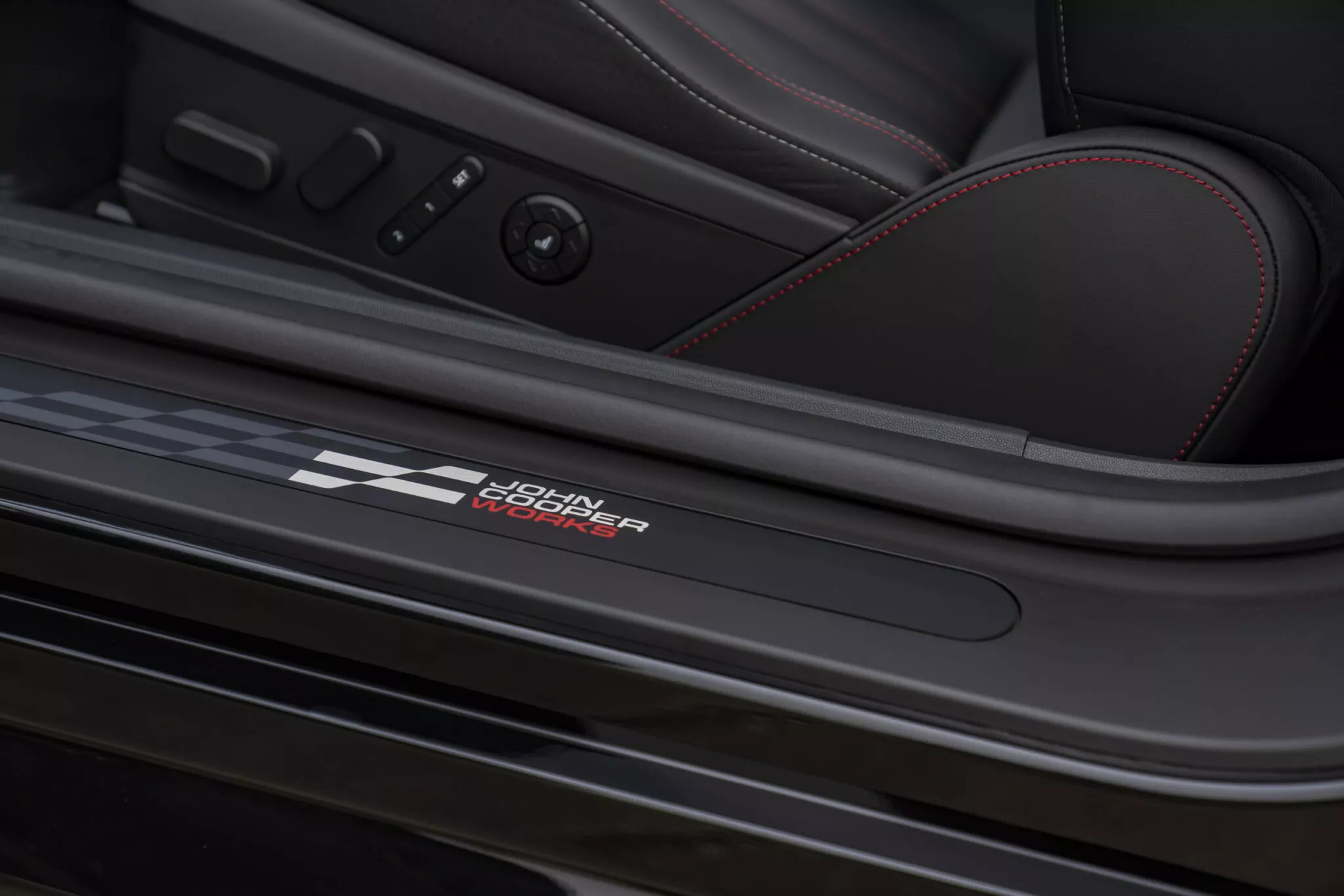 실내에서는 블랙 바탕에 레드 체크플래그 패턴이 적용된 패브릭 니트가 대시보드를 감싸고 있고, 일체형 헤드레스트에 니트 재질과 친환경 인조가죽이 혼용된 JCW 스포츠 시트에 전동 조절 및 메모리, 열선 기능이 함께 제공되며 스티어링 휠을 비롯한 곳곳에 레드 포인트 스티치가 적용된다. 파노라믹 루프에는 일루미네이티드 기능이 함께 포함된다.