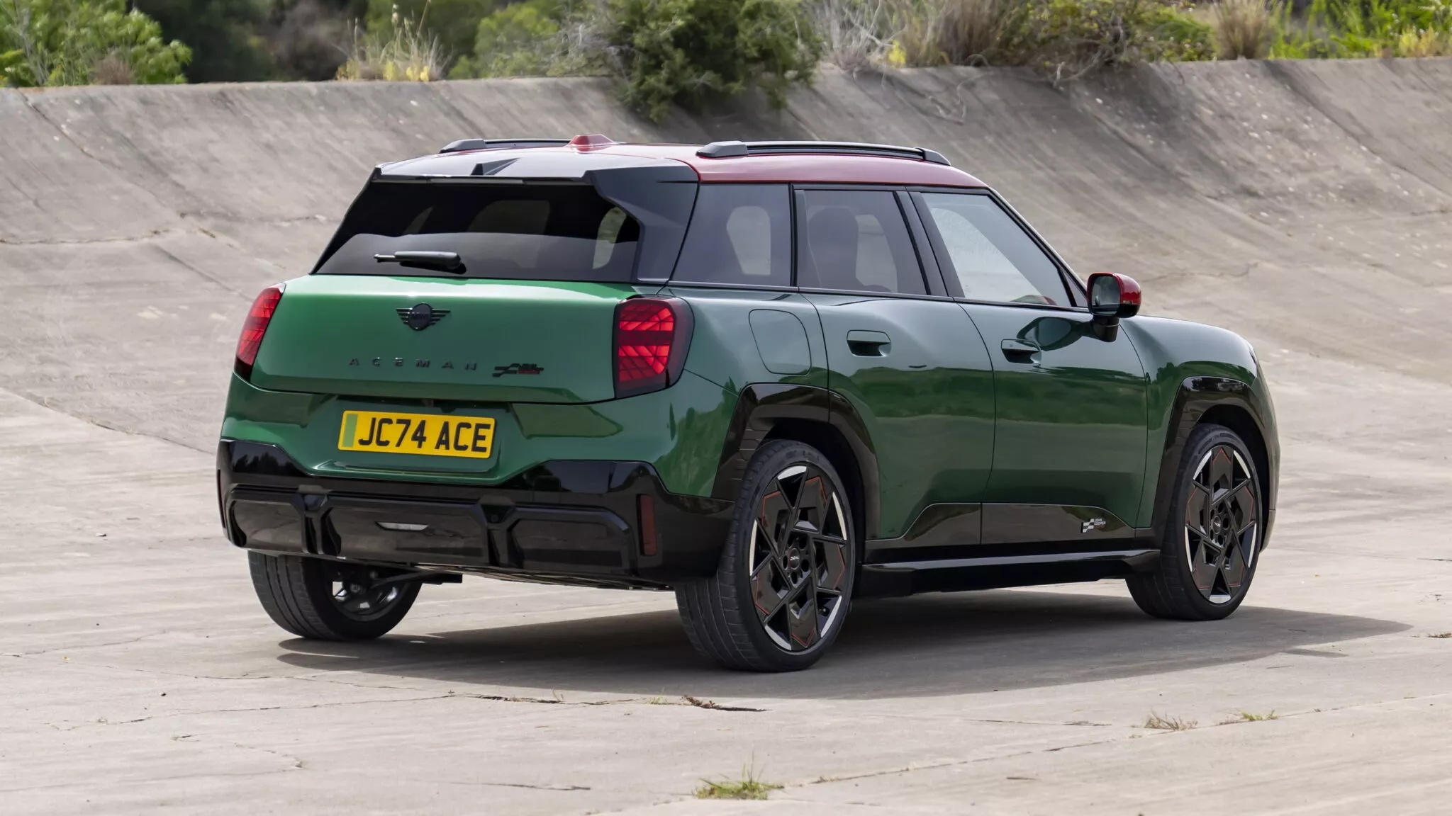 후면에서는 측면 쿼터 글라스와 상단 루프에서 연장되는 형태의 대형 리어 스포일러와 넓은 면적의 리어 디퓨저로 에이스맨 SE보다 스포티한 감각을 전하며, 다른 JCW 라인업들과 공통된 콘셉트를 유지한다.