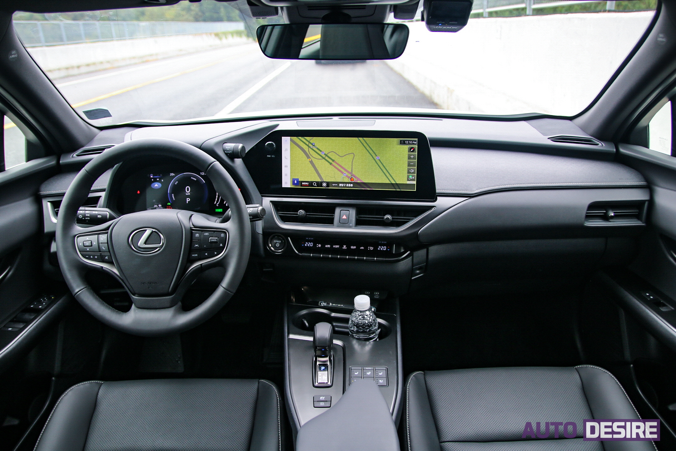 실내 사이즈도 윗급 렉서스 하이브리드 차량에 비해서 많이 컴팩트하고 전체적인 구성에서도 상대적으로 간결한 듯하지만 수평형 구조에 비대칭 라인으로 렉서스만의 독특하고 고급스러운 분위기를 주는 인테리어 테마가 UX 300h에도 적용되었다.