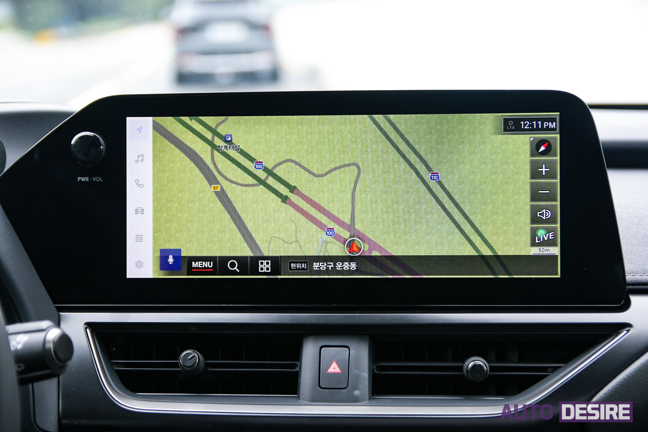 평촌에 위치한 엘앤티 렉서스 안양 시승센터를 출발해 안양판교로를 넘어 판교 운중동을 거쳐 다시 하오개로를 넘어 안양종합운동장을 경유하고 다시 안양 시승센터로 복귀하는 도심 및 근교 도로, 산길을 25km 주행하고 기록한 평균 연비는 21.6km/L로 UX 300h의 실 평균 연비가 기대 이상으로 더 좋다는 걸 증명해 줬다.