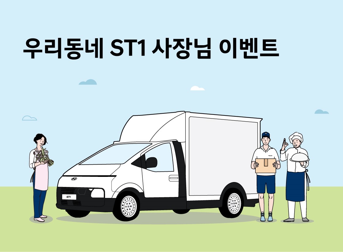 ST1 라인업 완성 기념 우리동네 ST1 사장님 이벤트 ST1과 함께 비즈니스 성장을 향해 달리고 계신 우리동네 ST1 사장님을 찾습니다. ST1과 함께하고 계신 고객님의 특별한 사연을 들려주세요.