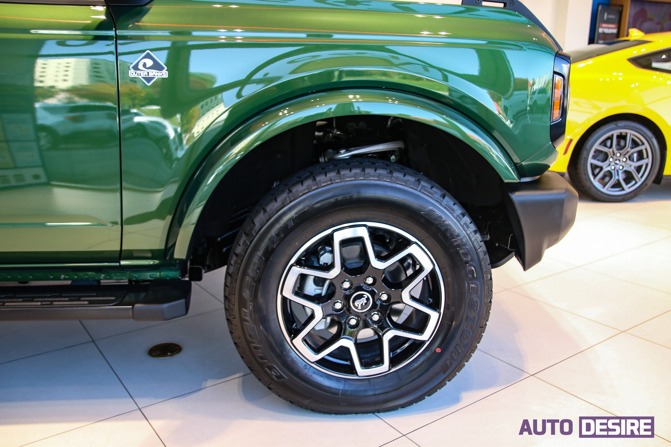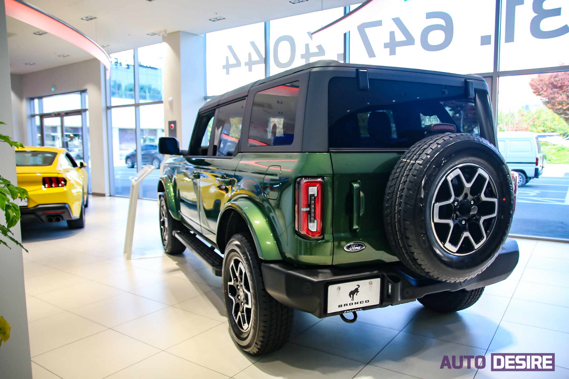 기존 브롱코 V6 2.7 모델과 비교해 아주 약간의 사양 구성에 차이가 있기는 하지만, 아우터뱅크스 트림을 바탕으로 기존 뉴 포드 브롱코의 스타일과 편의 사양들은 대부분 유지하면서 여전히 모자람 없는 주행 성능을 갖추고 가격 부담은 덜었기에 브롱코 구매 희망 고객들에게 희소식이 되었을 것으로 보이는데, 앞서 짧게 시승해 본 것에 이어서 개성 있고 매력적인 '이럽션 그린' 색상 차량이 포드 평택 전시장에 전시되어 있어 실물의 모습을 한 번 더 살펴보았다.