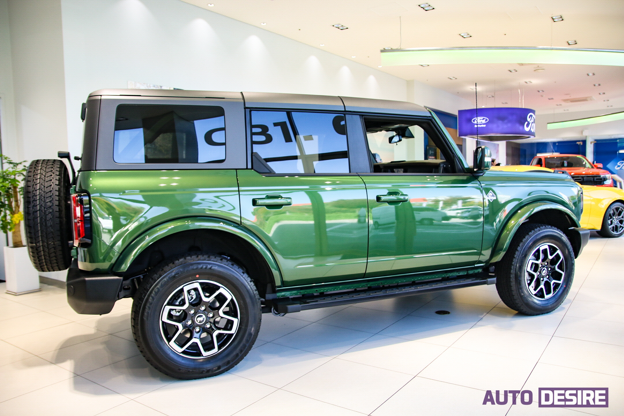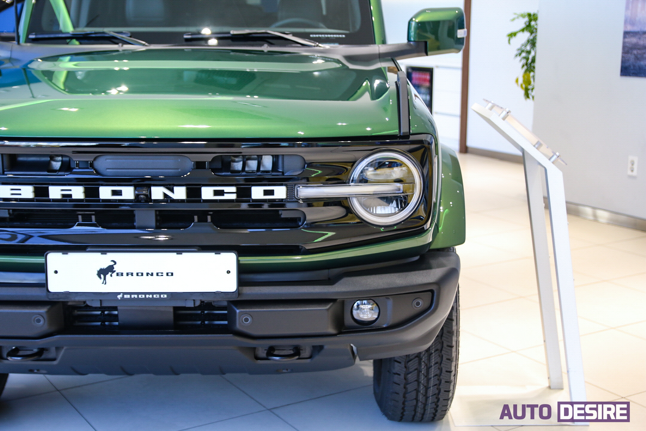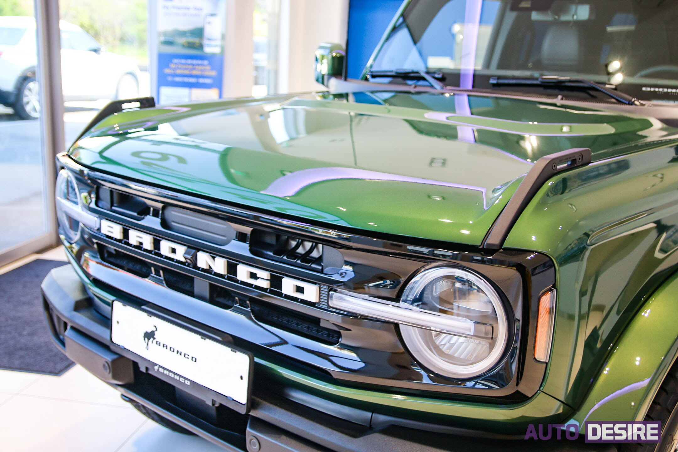 현재 평택 전시장에 전시 중인 브롱코 2.3 모델의 '이럽션 그린' 색상은 글로스한 느낌이 잘 살면서도 푸릇푸릇하고 밝은 톤에 메탈릭한 질감도 가지고 있어 칙칙하고 투박한 느낌은 적고, 세련되면서도 오프로드 SUV에 잘 어울리는 액티브한 감각이라 녹색 계열 색상을 선호하는 고객들에게 선택 욕구를 불러일으킬 것 같다.