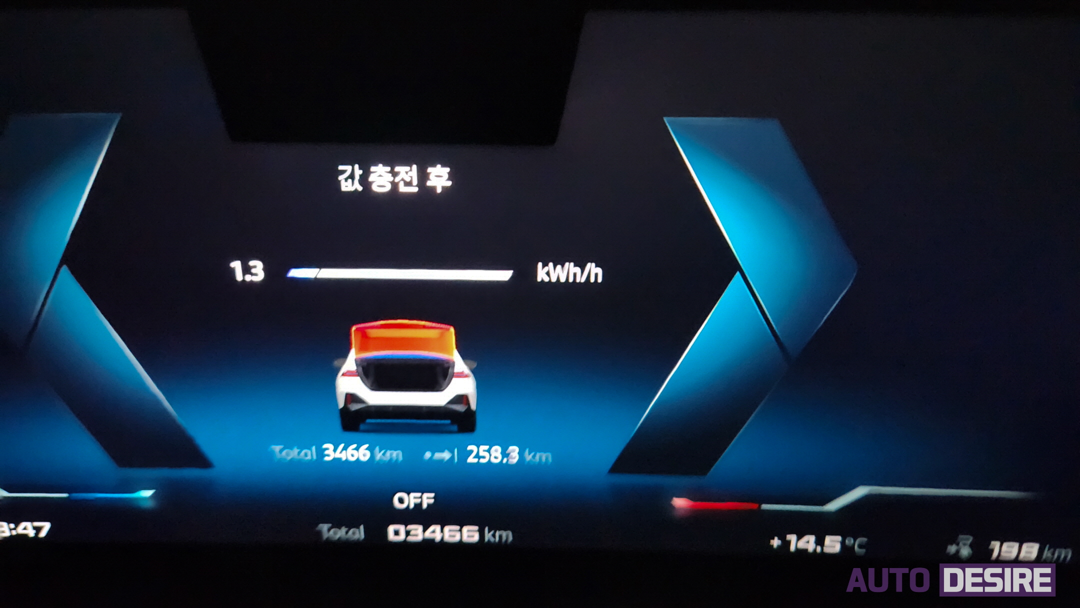 이 정도라면 일상적인 주행 조건으로 동절기에도 걱정 없이 350km 내외, 공인 1회 최대 주행거리만큼은 무리 없이 주행이 가능하다고 봐도 좋겠다.