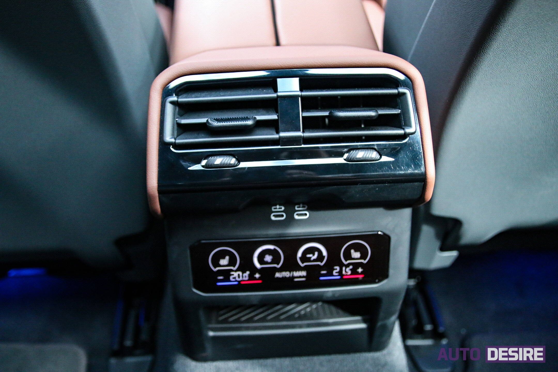 후석 공간 역시 E 세그먼트 프리미엄 세단으로써 승객 편의를 좀 더 염두에 둔 모습으로, 편의 기능으로 4존 에어컨을 통해 2열까지 개별적으로 온도와 송풍량, 송풍 방향 조절이 가능하며 센터 C-타입 USB 충전 포트 외 1열 시트백에도 USB 포트를 추가로 마련했고, 측면 유리에는 수동식 선 커튼이 제공된다.
