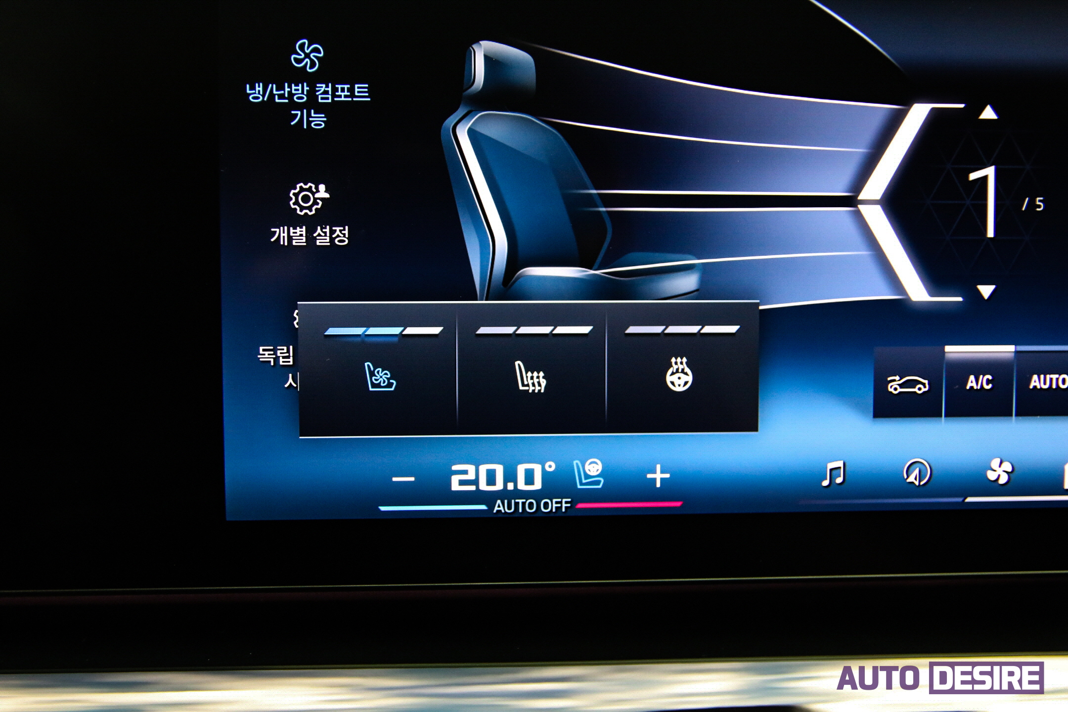 메리노 가죽으로 마감한 1열 시트에는 열선/통풍/메모리 기능을 지원하고, 스티어링 휠 역시 열선이 포함된다. M60임에도 M 스포츠 시트가 아닌 메리노 가죽 시트를 적용한 것은 본격적인 스포츠 주행보다는 일상 주행에서의 편안함까지 함께 고려한 것으로 보인다.