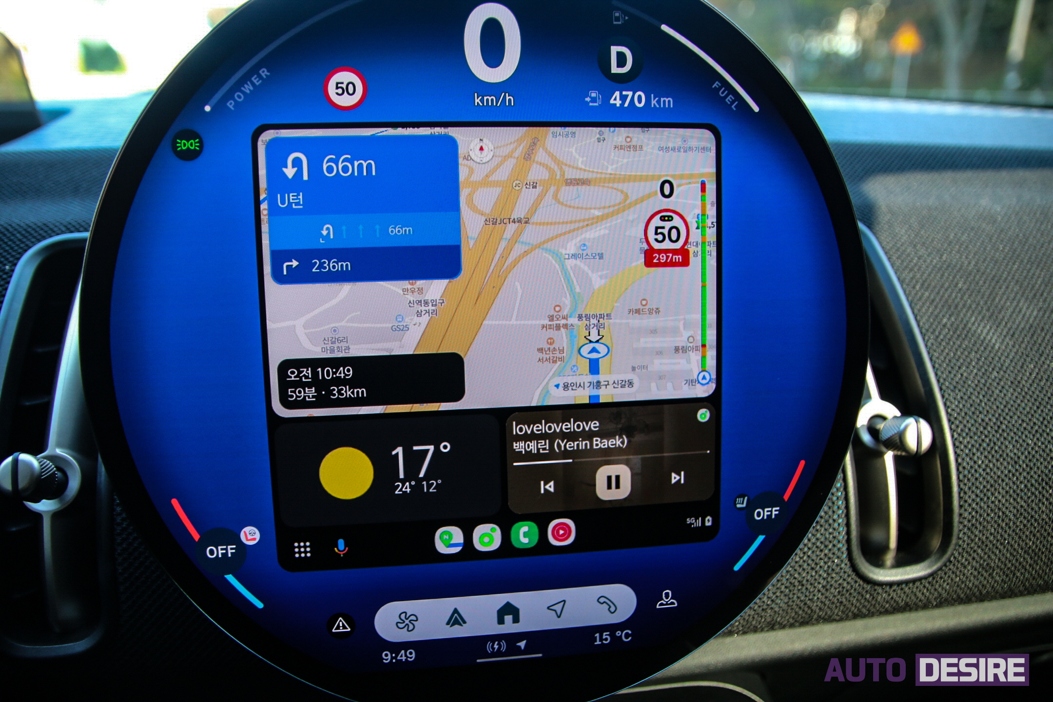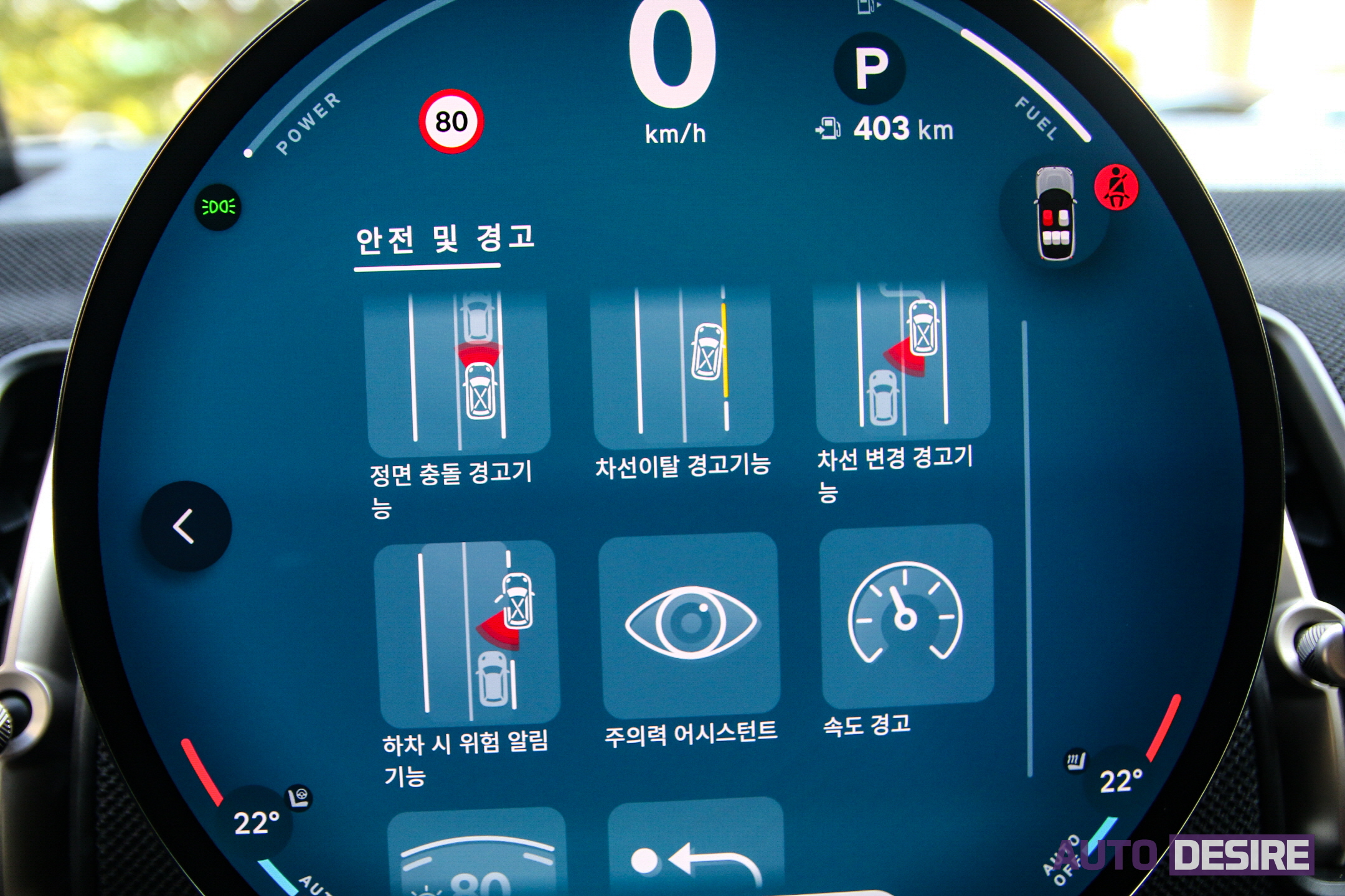 기존의 물리버튼 방식만큼은 아니겠지만, 공조 장치와 함께 시트 열선, 스티어링 휠 열선 작동과 미디어, 홈, 내비게이션, 통화 등 자주 사용하는 기능은 스크린 하단 바에 메뉴를 만들어서 빠르게 진입, 조작할 수 있게 했고 음성 인식 기능으로도 원하는 기능을 빠르게 제어할 수 있도록 도와준다.