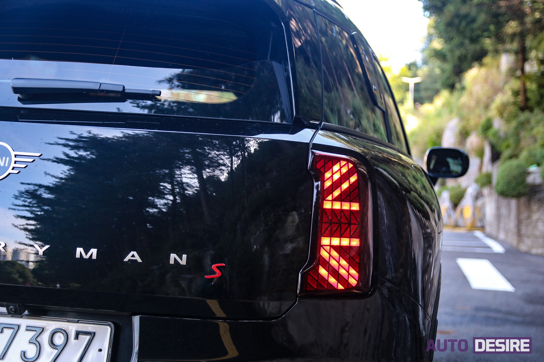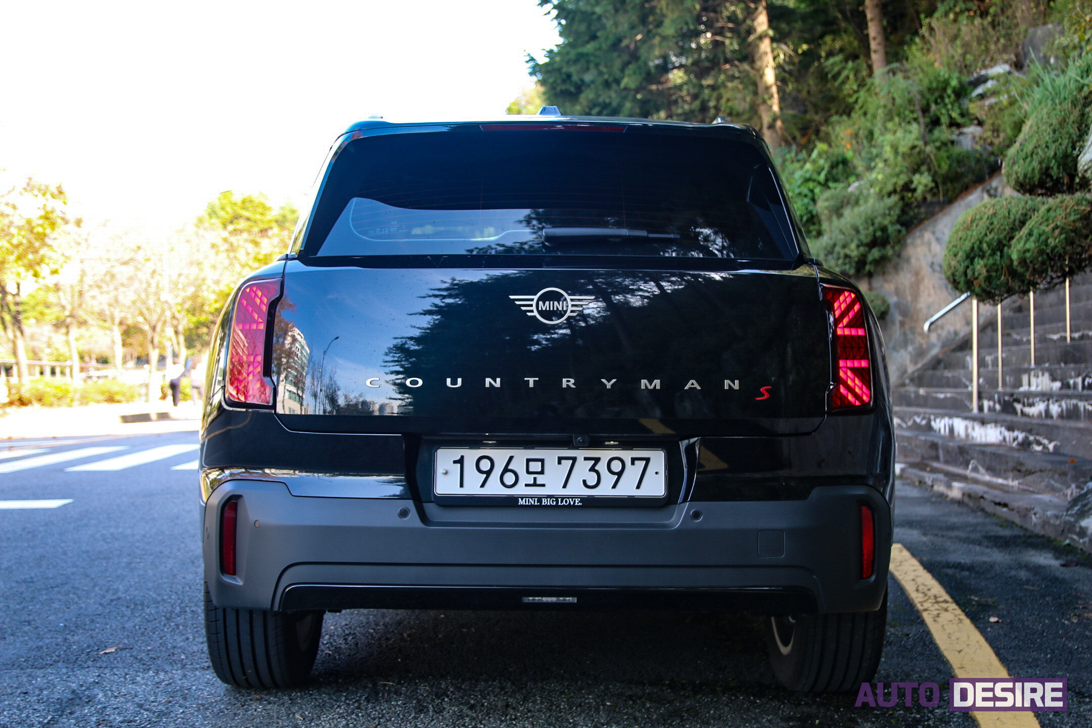 차체 측면 하단과 리어 범퍼 하단으로는 앞 범퍼 하단과 마찬가지로 무광 클래딩을 적용해 오염/흠집에 대비하면서 SUV다운 인상을 높였고, 수직형 리어 리플렉터과 상단의 LED 리어 램프와 이어져 차체가 더 커 보이게, 웅장한 느낌을 준다. 추가로 JCW에는 쿼드 팁 테일 파이프가 적용되지만, 쿠퍼 S는 머플러 팁을 외부로 노출시키지 않아 깔끔하게, 미니멀하게 정리했다.