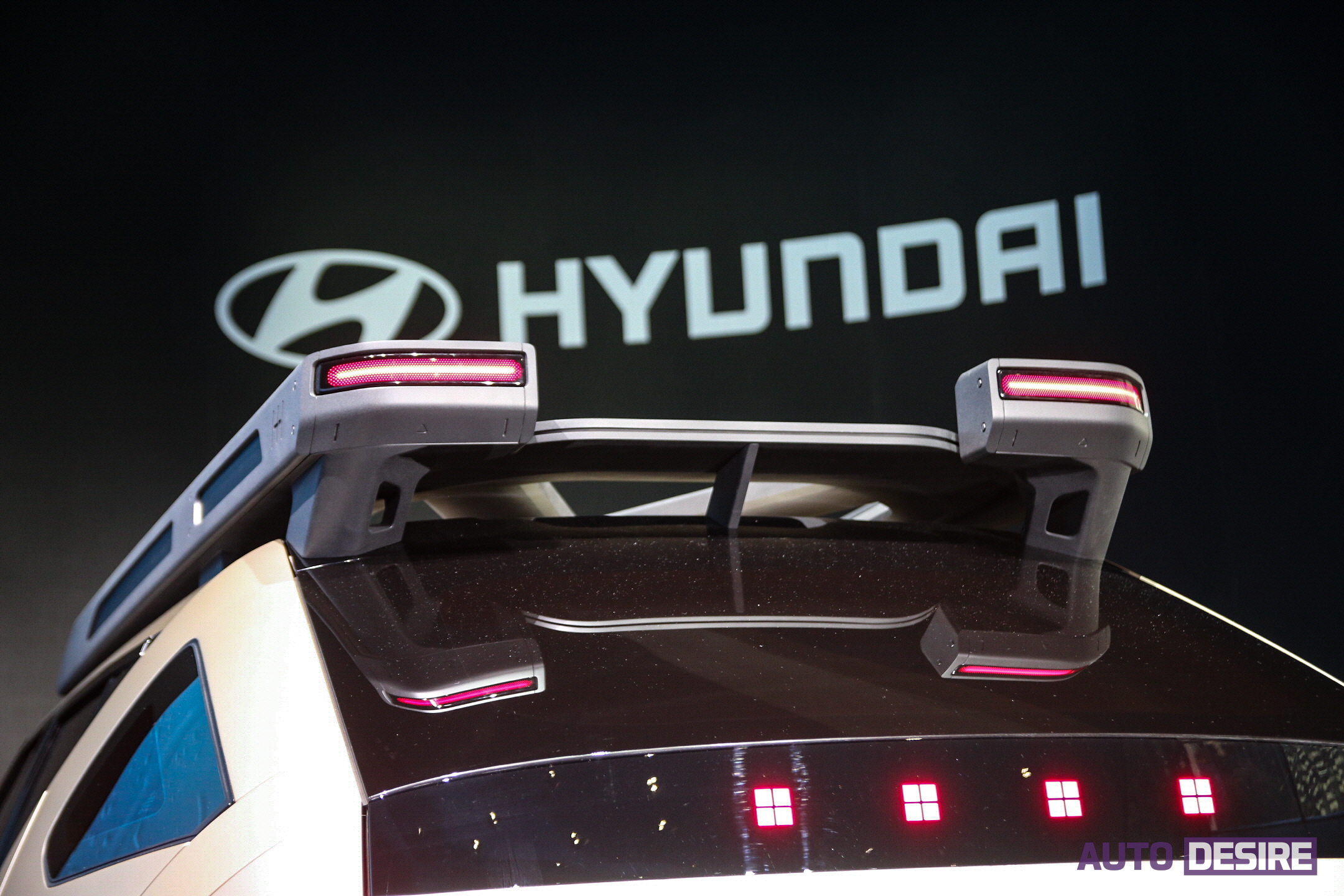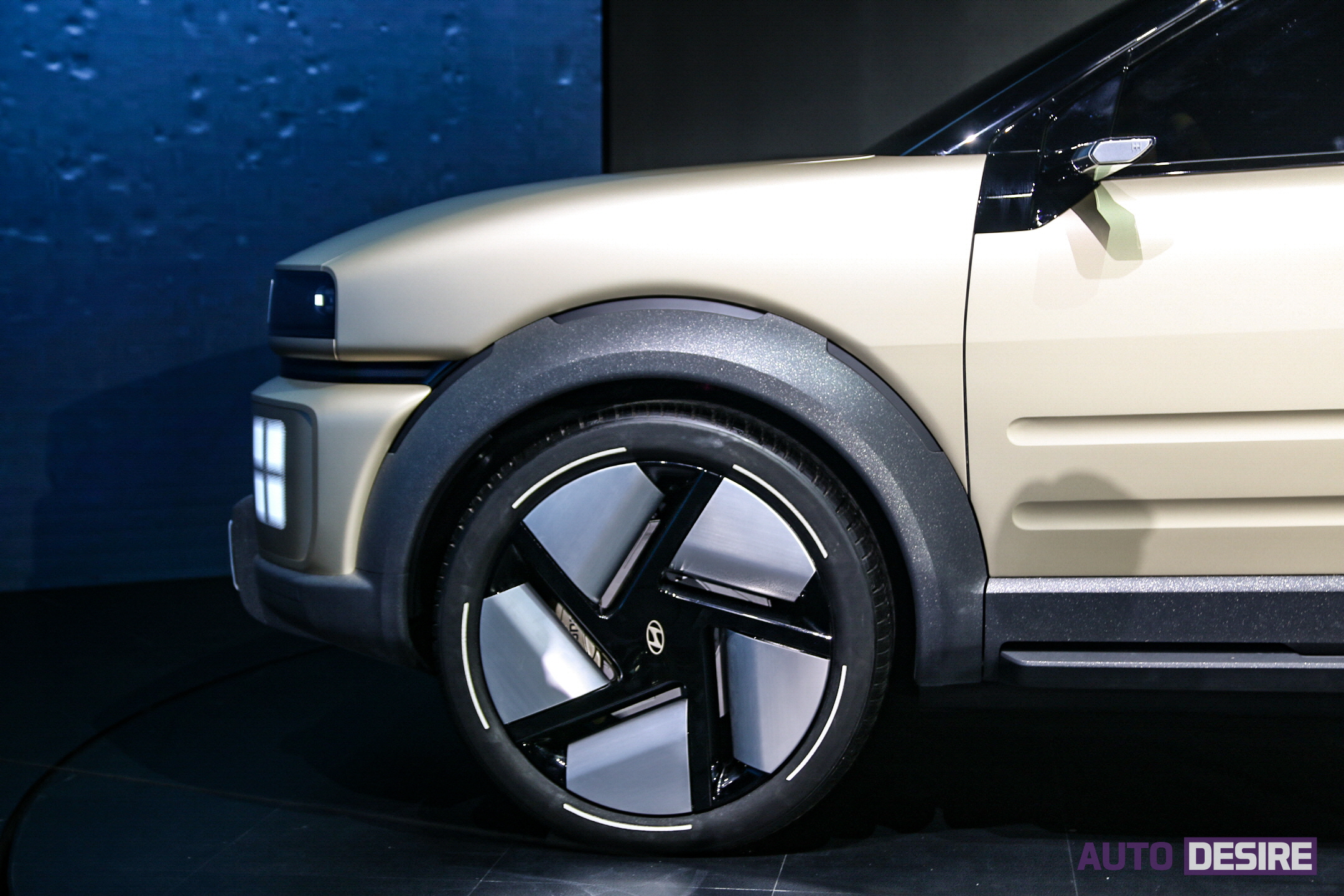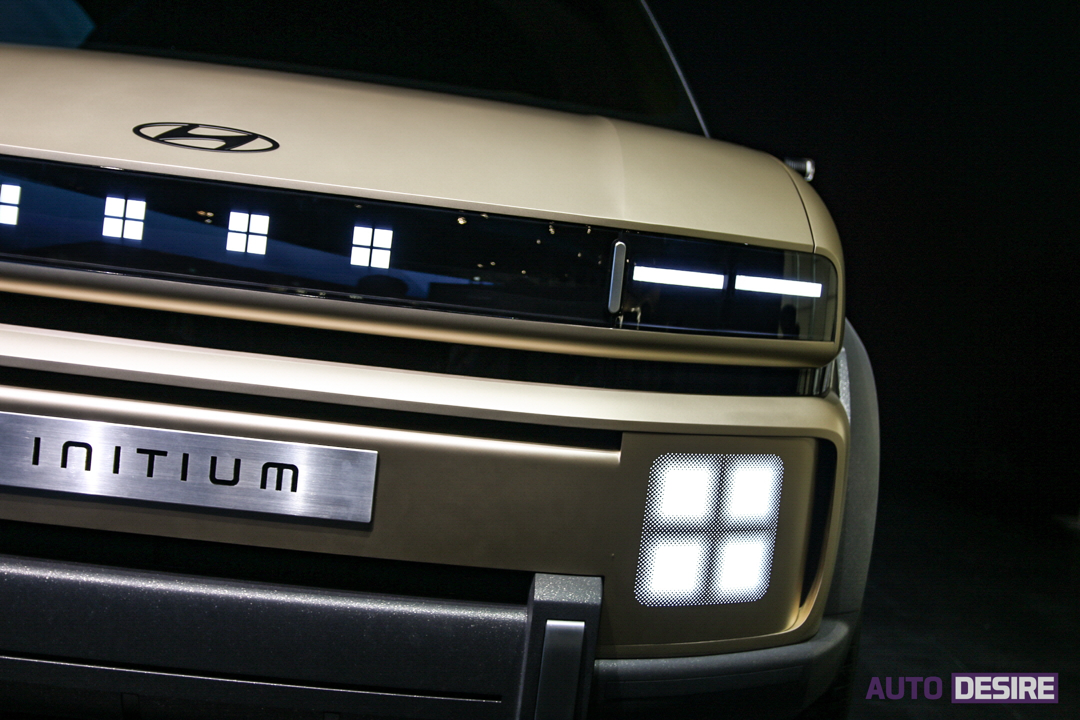 이러한 디자인 언어를 바탕으로 전면부에서는 후드 바로 아래로 직각으로 넓게 펼쳐지는 블랙 패널 안에 램프 디테일을 더하고, 하단 범퍼와 상하를 구분해놓은 구조를 가지고 있는데, 이는 수소 전기 하이브리드 스포츠카 콘셉트 카인 'N 비전 74'의 스타일에서 영감을 얻었다고 하며, 향후 현대자동차가 선보일 수소 전기차 라인업의 기본 틀, 패밀리룩으로 자리 잡을 것으로 보인다.