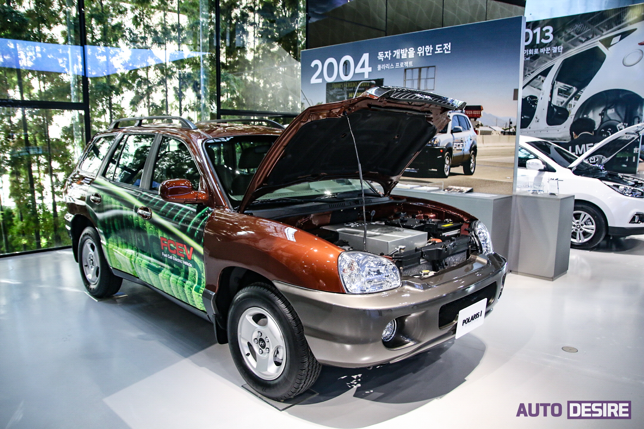 현대자동차가 과거 수소 전기차 개발을 위해 진행한 머큐리/폴라리스 프로젝트의 시험차량인 1세대 투싼 FCEV, 1세대 싼타페 FCEV 차량과 함께 글로벌 시장에 관용 차량 및 리스 형태로 본격적으로 수출을 시작한 '투싼 ix FCEV', 일반 고객들을 대상으로 본격적으로 양산 및 판매를 시작한 수소전기 SUV인 '넥쏘'까지 한 자리에서 만나볼 수 있으며, 해당 차량 개발 프로젝트 진행 당시의 사진 및 보고서, 도면 등이 함께 전시된다.