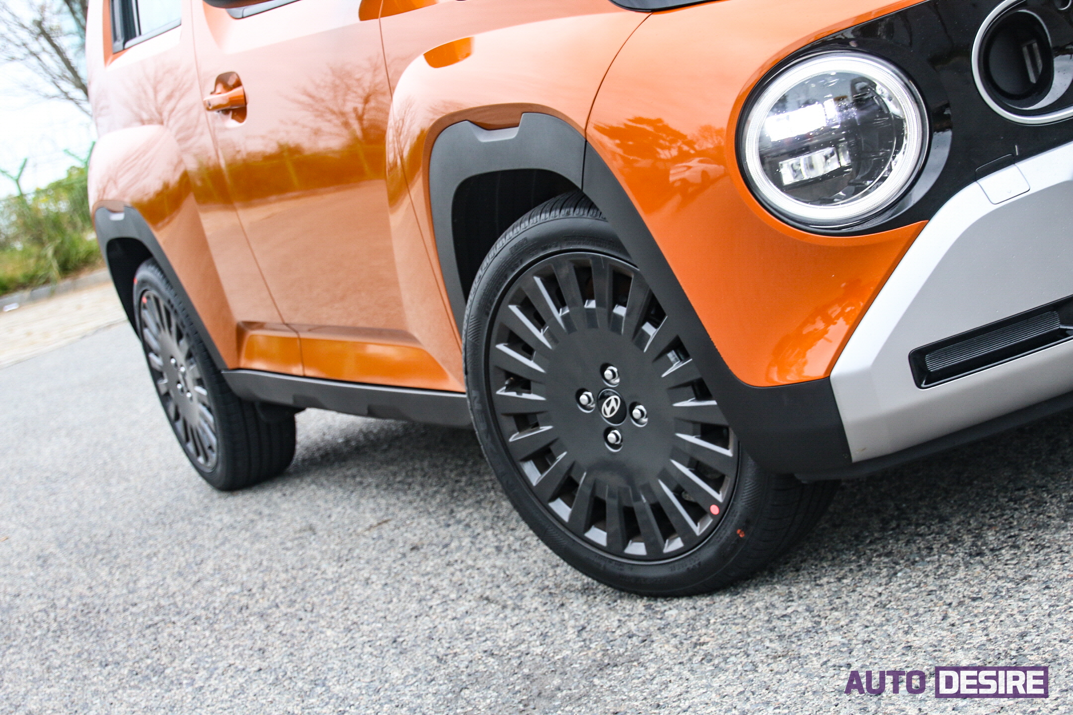 새로운 현대 더 뉴 캐스퍼 중 준비된 시승 차량은 가장 최상위 트림인 인스퍼레이션에 액티브 II와 액티브 플러스 옵션까지 적용된 1.0 터보 모델. 외장 색상은 캐스퍼 일렉트릭에도 적용되는 톡톡 튀는 신규 색상 '시에나 오렌지 메탈릭'이 적용되었다.