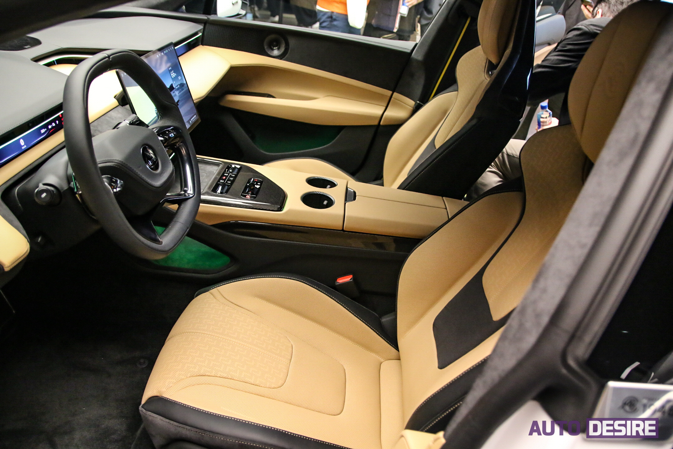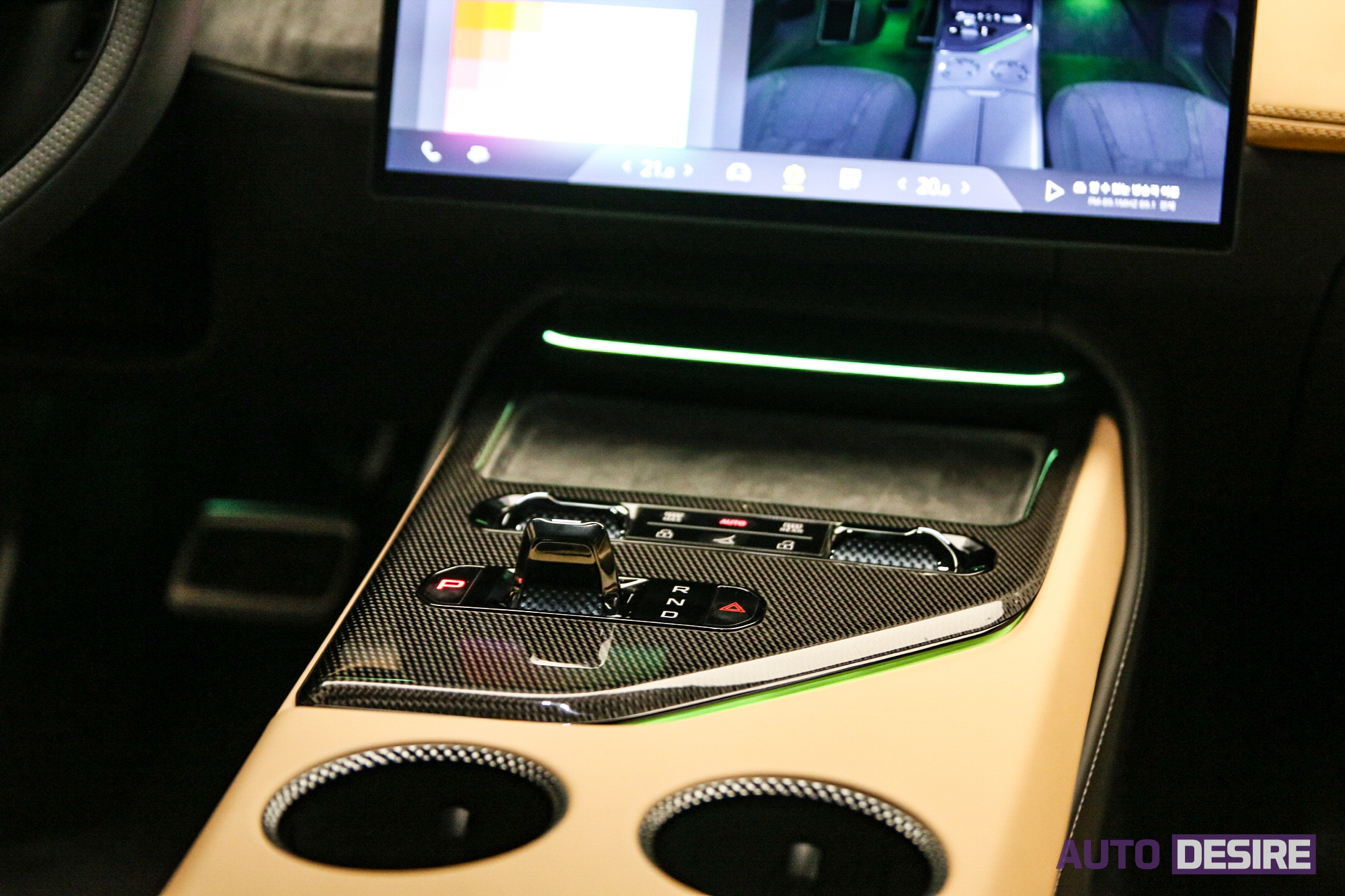 각 트림별, 선택 사양 여부에 따라 나파 가죽, 비건 가죽 등 세부적인 컬러, 소재에 일부 차이가 있을 수는 있지만 기본적으로 지속가능성을 고려한 소재를 복합적으로 사용한 것과 함께 카본 인테리어 트림, 알칸타라 스티어링 휠 등을 통해 고성능 감각을 더 잘 살리고 있다.