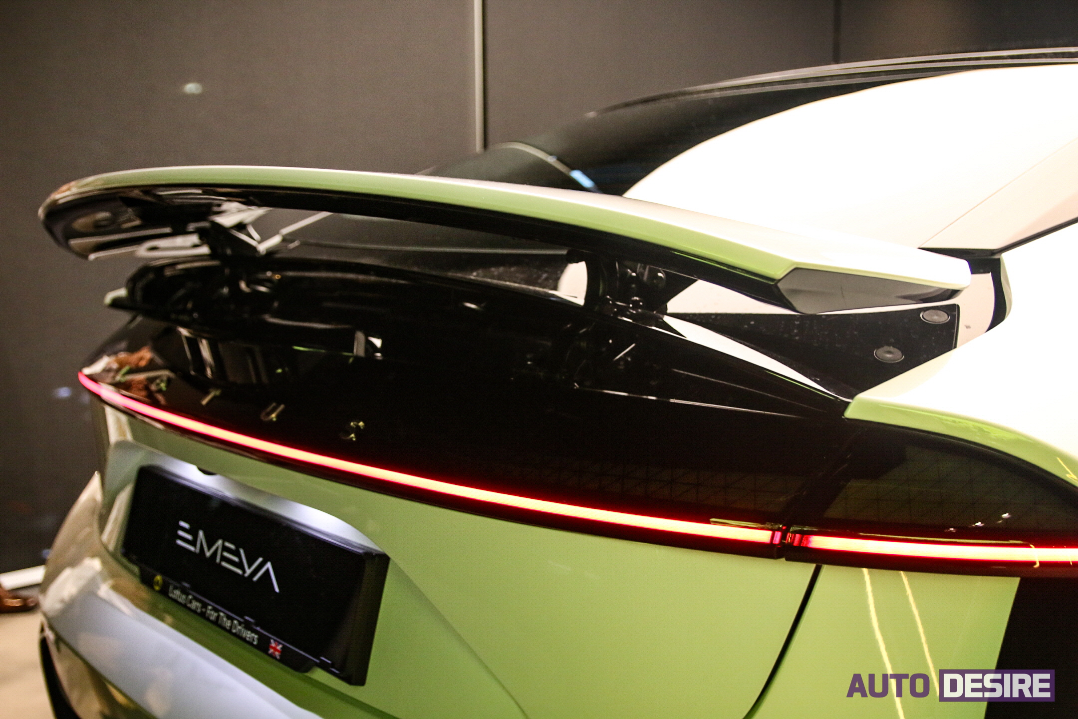 물론 이와 같은 강력한 성능과 함께 제동 성능도 확실히 발휘할 수 있도록 에메야 S부터 6-피스톤 브레이크 캘리퍼와 경량 브레이크 디스크가 적용되고, 액티브 에어 서스펜션과 함께 에메야 R에는 인텔리전트 안티-롤 컨트롤과 액티브 리어 휠 스티어링 휠로 구성된 '로터스 다이내믹 핸들링 팩', 런치 컨트롤이 가능한 로터스 트랙 모드가 포함되어 더 민첩하고 짜릿한 퍼포먼스를 즐길 수 있게 했다.