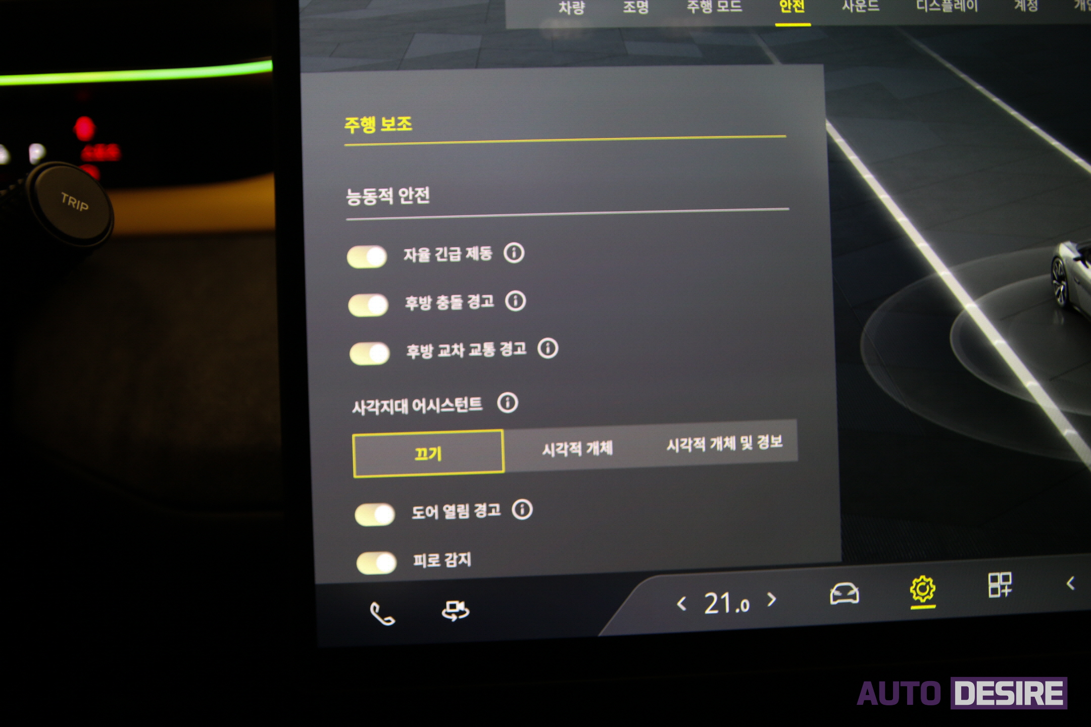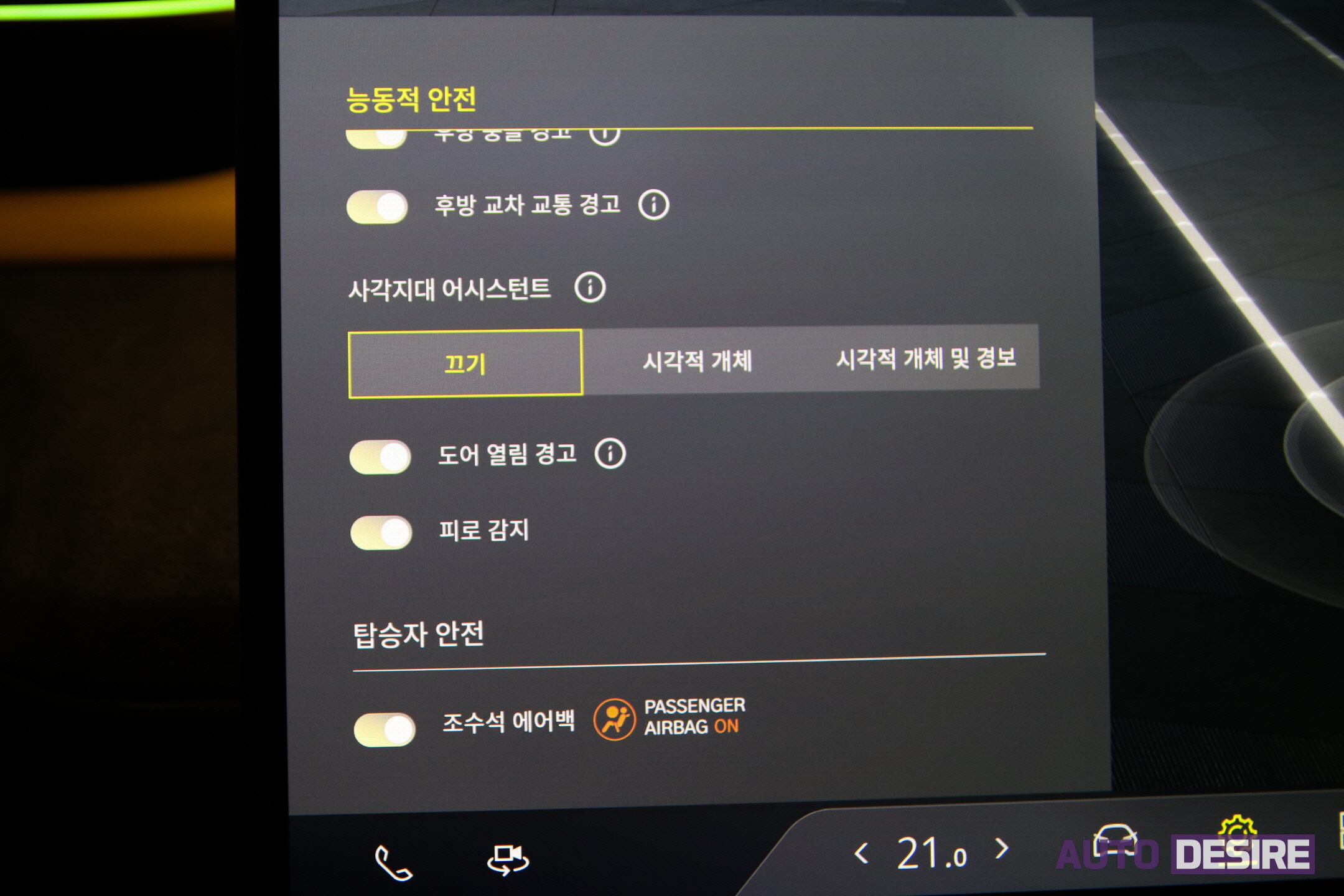 주행 보조 및 능동적 안전 기능에는 자동 긴급 제동, 후방 충돌 경고, 후방 교차 충돌 경고, 사각지대 어시스턴트, 피로 감지를 포함해 스마트폰으로 원격 자동 주차가 가능한 파킹 팩, 차선 인식 및 차로 중앙 유지, 회피 조향 보조 등이 포함된 하이웨이 어시스트 팩 등 최신, 최고 수준의 사양들을 탑재했다. 사이드 미러도 공력 성능을 높이고 넓은 시야를 확보할 수 있는 디지털 미러로 선택 가능하다.