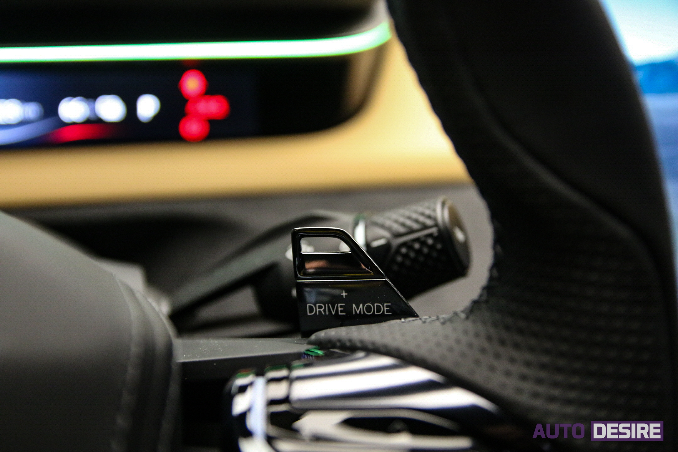 스티어링 휠 뒤편에 마련된 패들 시프트는 왼쪽에서 회생 제동 단계를, 오른쪽에서 드라이브 모드 설정을 선택할 수 있다.