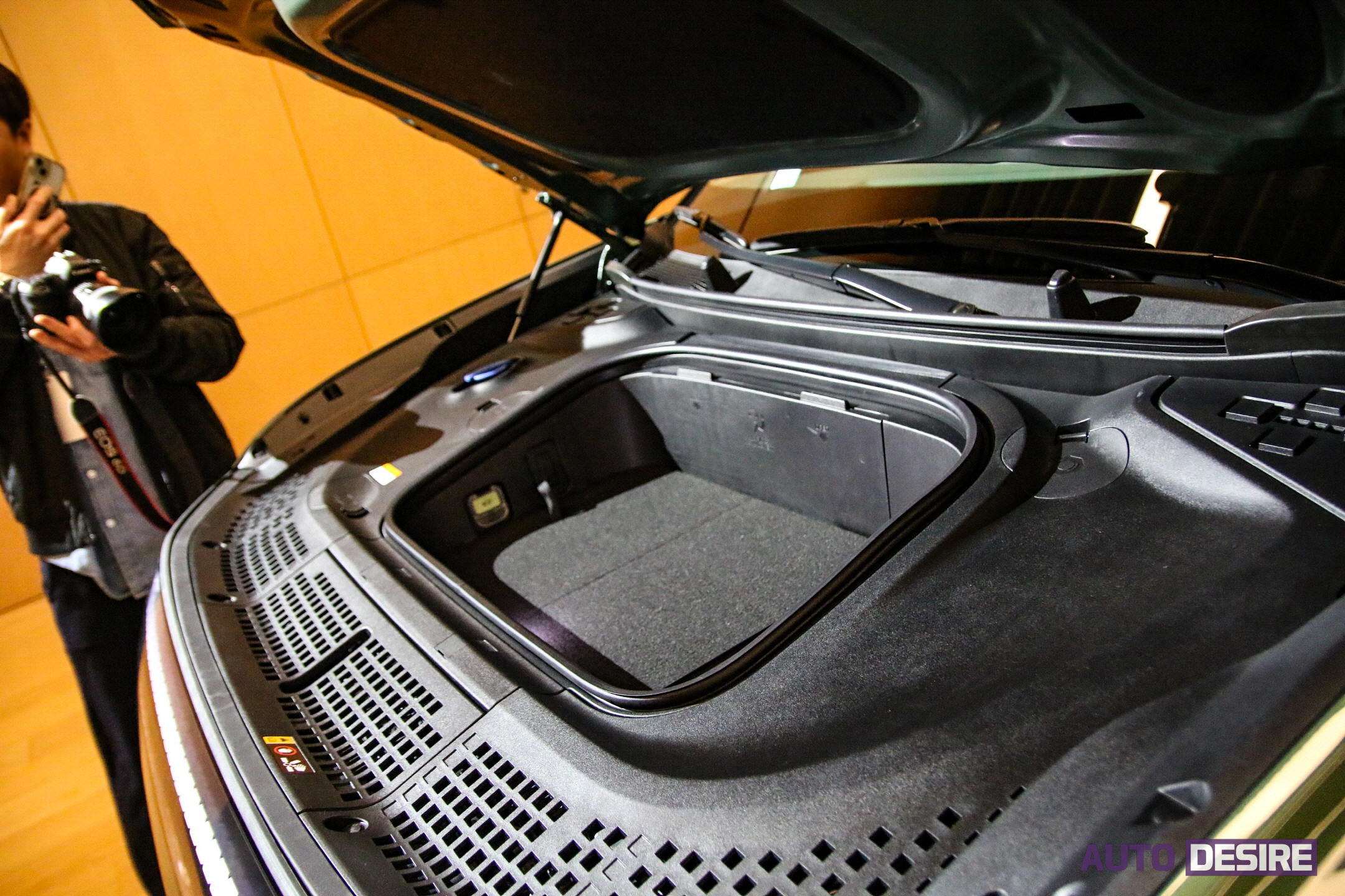 프렁크는 2WD/4WD 여부에 따라 최대 88리터까지 사용 가능하며, 싱글모터 모델 프렁크의 경우 상부 커버가 있어 2단 구조로 구분해서 사용도 가능하다.