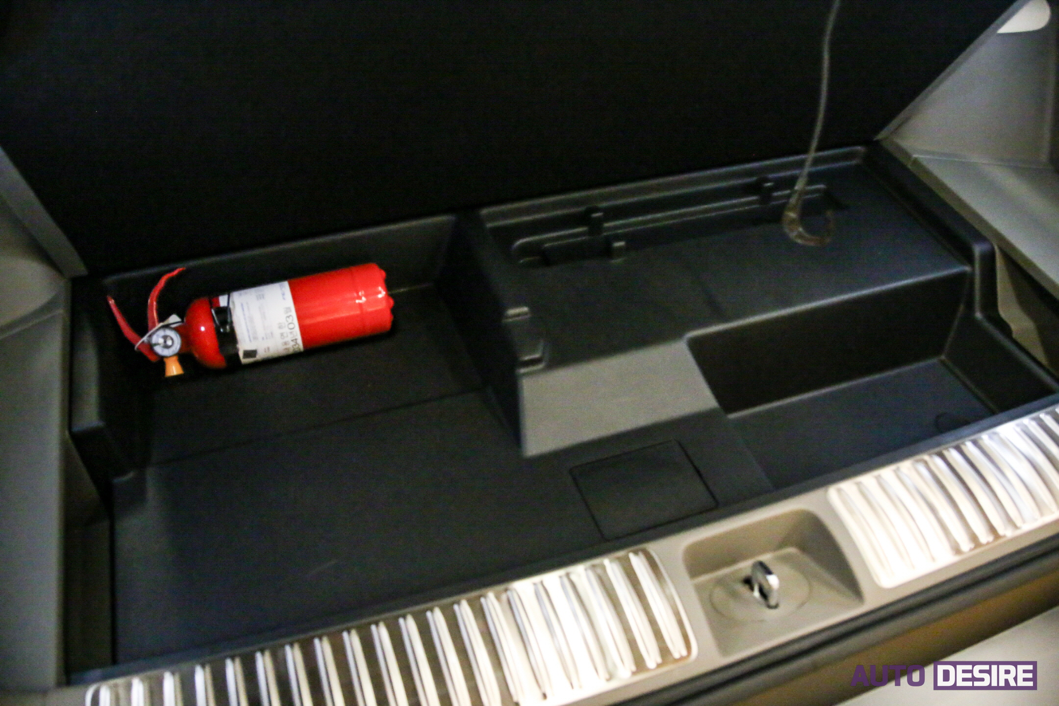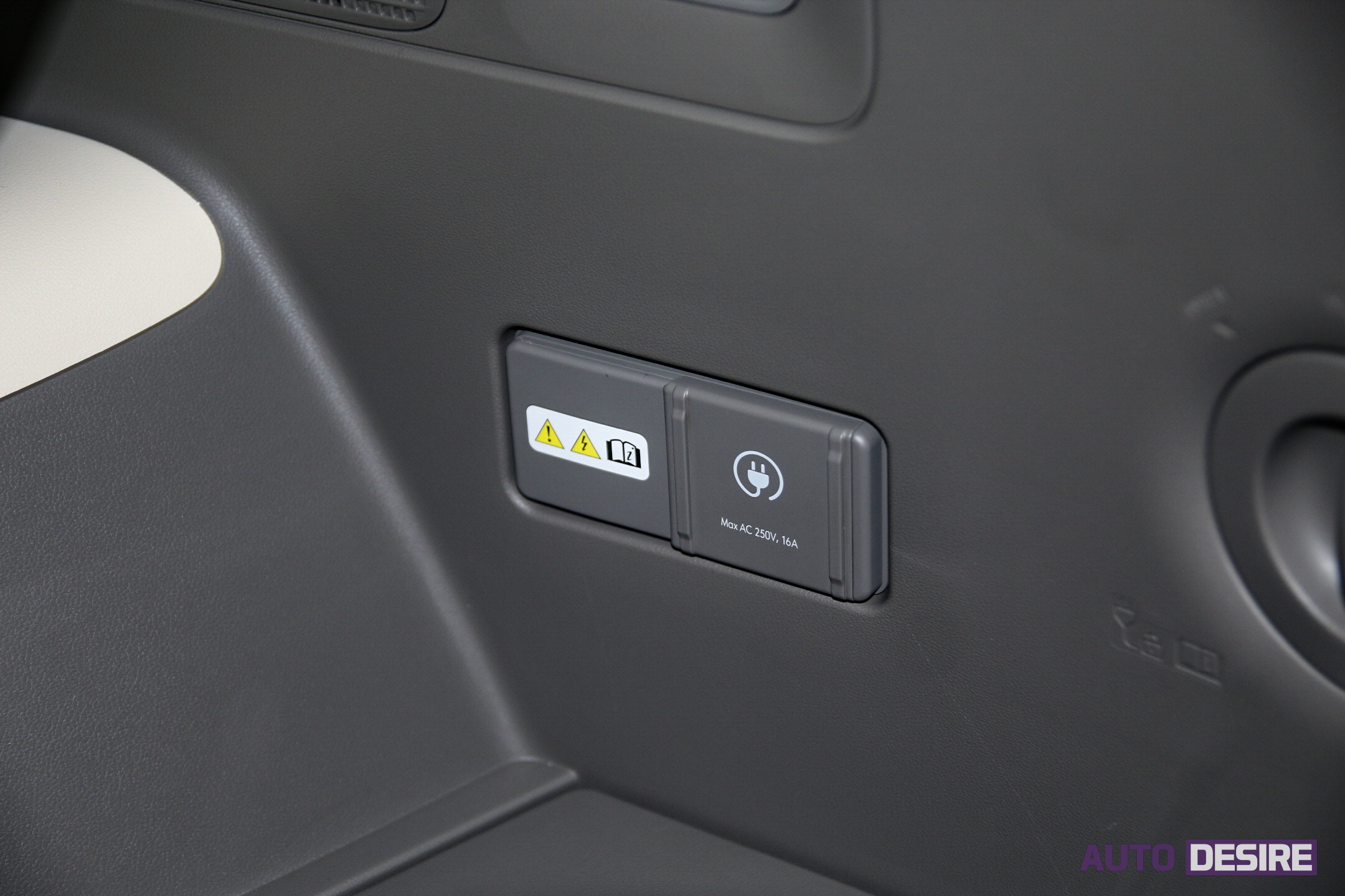 트렁크 적재 용량은 3열 시트 폴딩 시 908리터까지 사용이 가능하고, 6인승 모델에서도 2열 플랫 폴딩이 가능해 추가로 더 넓게 확장해서 여유롭게 사용이 가능하다. 3열까지 펼친 상태에서도 여행용 가방을 놓기에 충분한 적재 공간은 확보했으며, 바닥 아래에는 소화기를 비롯한 간단한 용품들을 보관할 수 있는 추가 공간을 제공한다. 트렁크 오른쪽 측면으로는 V2L 포트와 함께 전동 시트 폴딩 버튼이 위치한다.