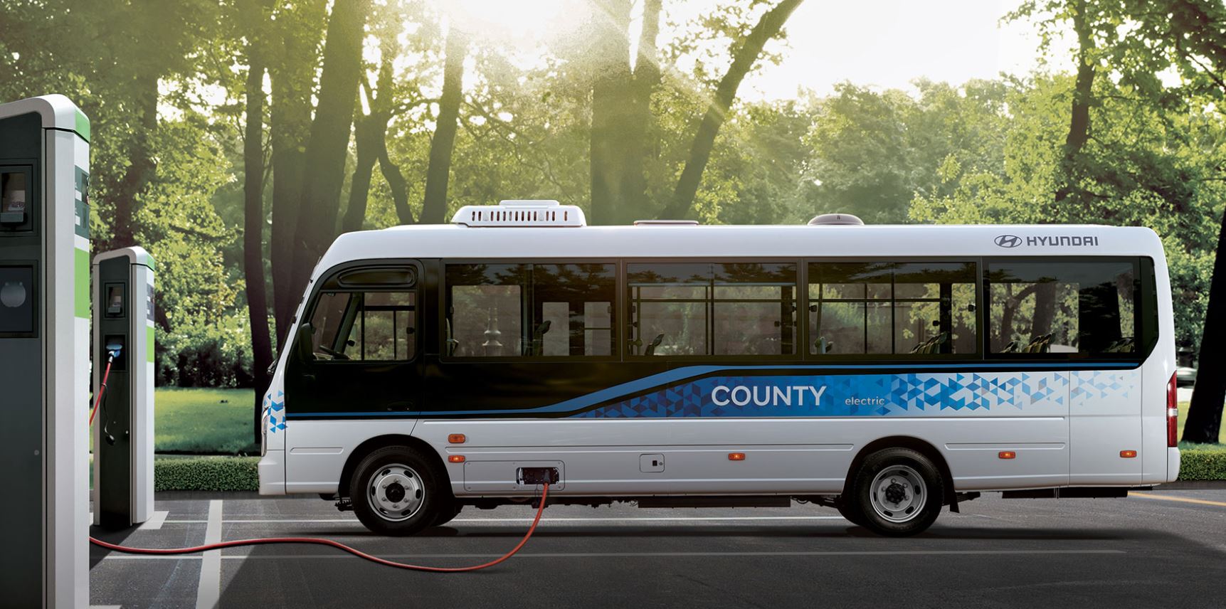 현대자동차가 지난 2019 현대 트럭&버스 비즈니스 페어를 통해 공개했던 국산 최초 중형 전기 버스 '카운티 일렉트릭'을 6월 29일 정식으로 출시한다. 카운티 일렉트릭은 마을버스, 어린이 통학 버스로 주로 활용되는 15~33인승 중형 버스에 고효율/고출력 배터리와 전기 모터를 갖춘 중형 전기 버스로 기존 카운티 대비 리어 오버행을 600mm 늘려 7,710mm의 초장축 모델로 늘어난 전장만큼 차량 하부에 리튬-이온 폴리머 고전압 배터리를 탑재해 총 128kWh 용량의 배터리를 적용, 1회 완충 시 최대 250km의 주행가능거리를 확보했다. (15인승 기준)