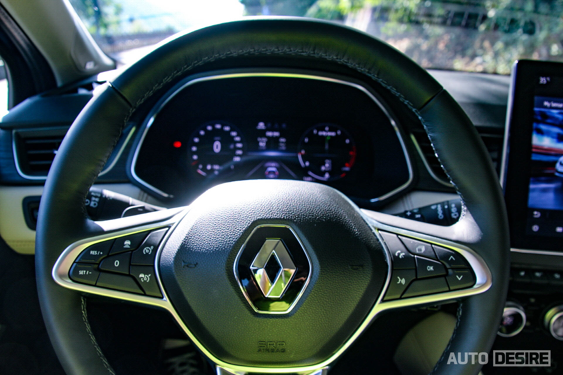 실내 구성은 먼저 출시한 르노삼성 XM3, 형제 차량인 신형 르노 클리어와 거의 동일한 구성이지만, 특히 캡처의 최상급 모델인 에디션 파리에서는 시트와 도어트림, 크래시패드 등 실내의 마감재, 센터 콘솔 디자인에서 한 단계 더 고급스러운 컨셉을 가져가려 했다는 것을 볼 수 있다. 송풍구와 이어지는 크래시패드 상단 마감에는 어두운 색상의 우드 그레인으로, 크래시 패드 하단과 센터 콘솔 테두리, 도어 트림은 스티치가 더해진 가죽 마감으로 소형 SUV 이상의 제법 고급스러운 느낌을 준다. 가죽 색상은 블랙/그레이 중 선택 가능하고 시승차에는 밝은 톤으로 화사한 느낌을 주는 그레이 인테리어가 적용되어 있다.
