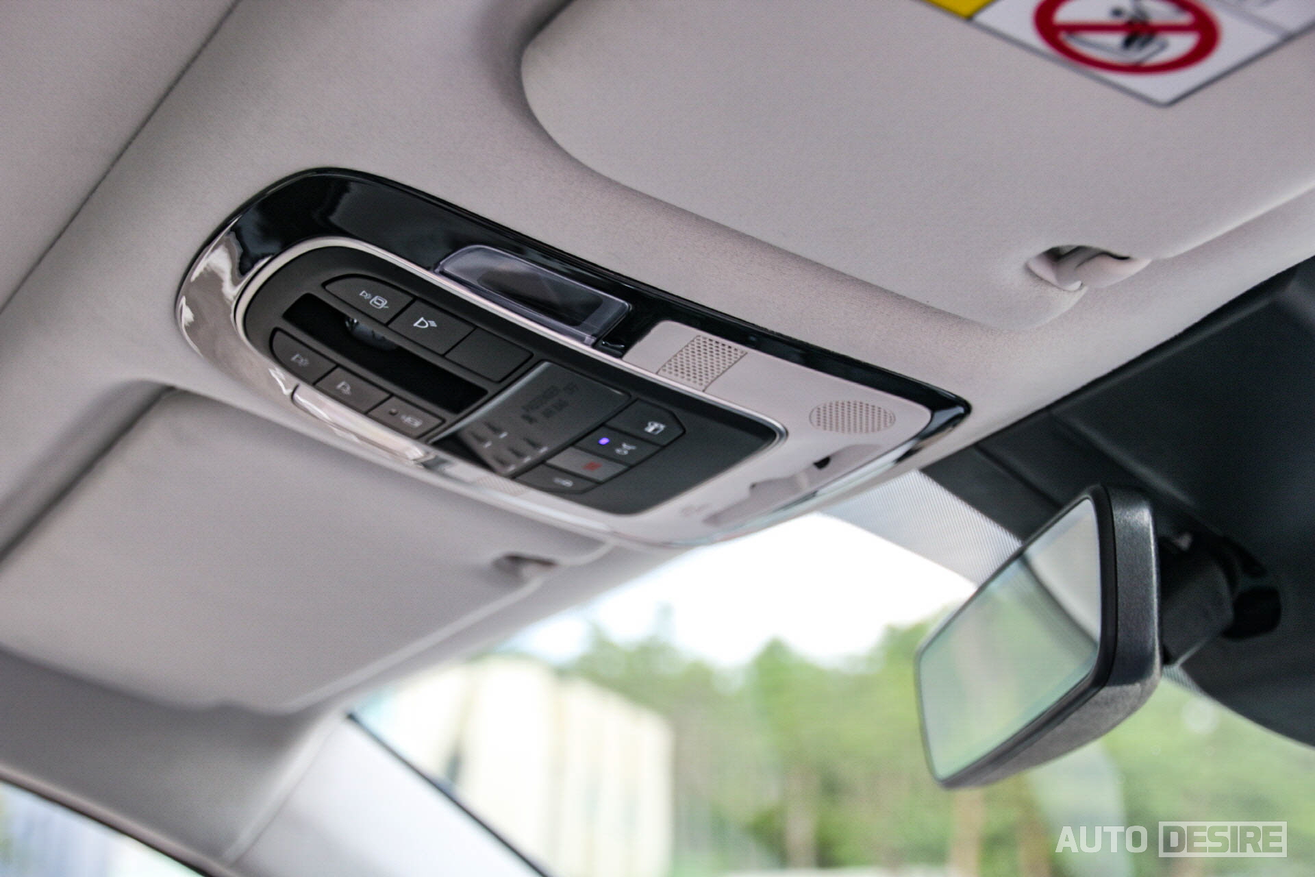캘리그래피에는 퀼팅 나파가죽 시트와 함께 천장에는 스웨이드 헤드라이너가 적용, 보들보들한 촉감을 준다. 룸미러가 심리스 타입 디자인의 변경되면서 하이패스 시스템, 블루링크 SOS 등 버튼들도 분리, 선루프 조작 버튼과 실내등과 함께 통합된 구성으로 달라져 한층 깔끔해진 모습이다.