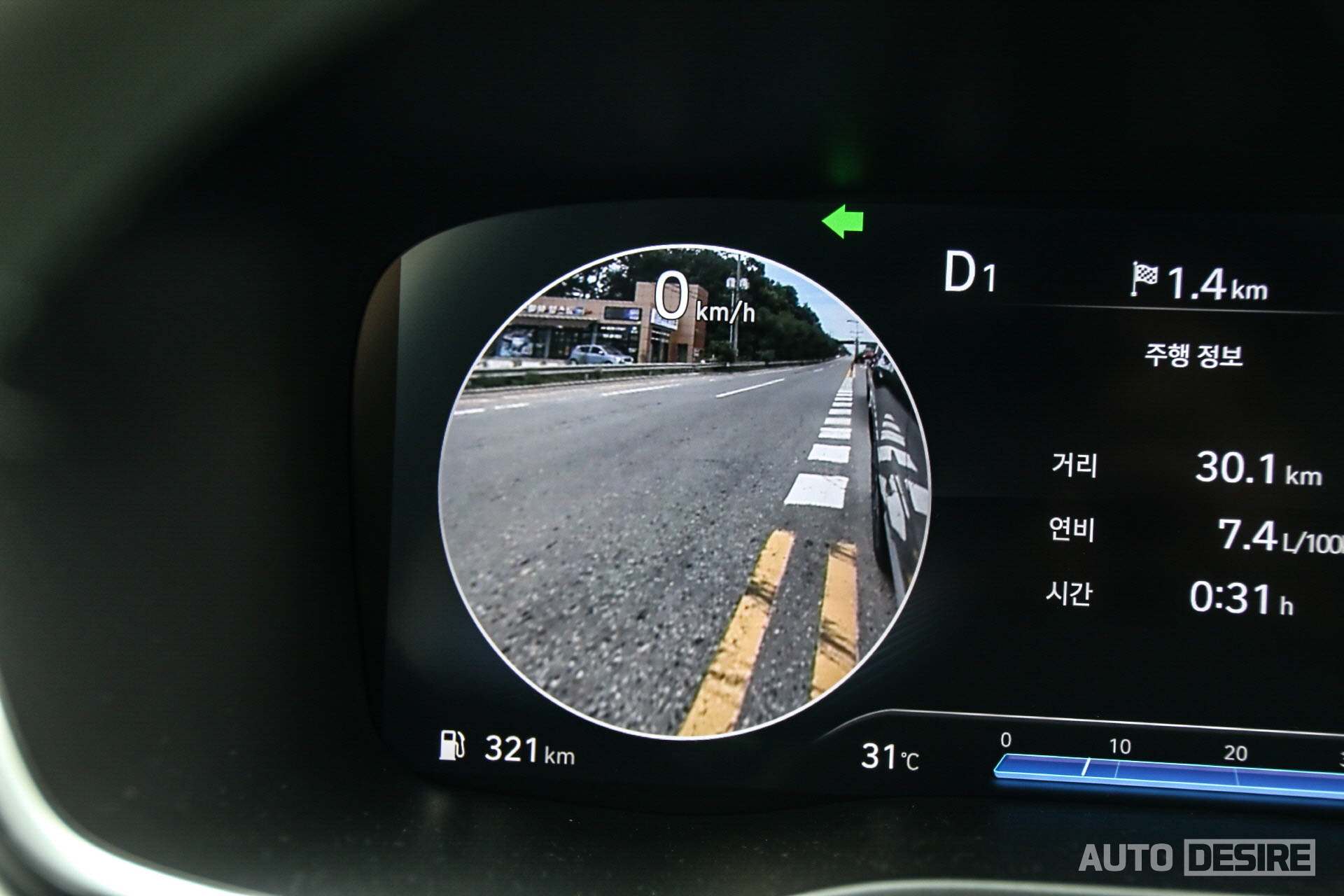 넓은 화면을 꽉 채워서 보여주는 서라운드 뷰 모니터의 화질도 준수한 편. 원격 스마트 주차보조 기능도 추가되어서 좁은 주차장에서도 직접 운전하지 않고 스마트키로 편하게 주차, 출차가 가능해졌다.