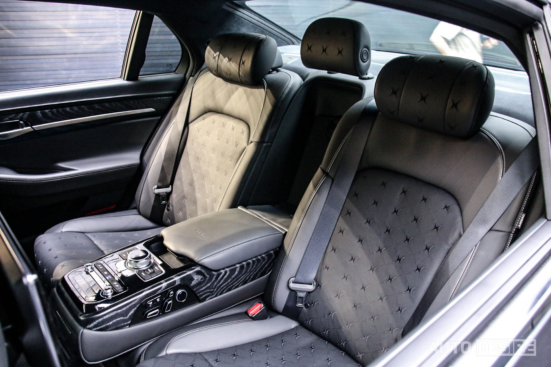 그리고 차의 외부에서는 찾을 수 없었던 스타더스트 레터링은 2열 암레스트에 펀칭으로, 1/2열 도어 상단 메탈 가니시에 양각으로 적용되어 일반 모델과 다른 소소한 특별함을 더했다. 내/외장 색상과 함께 소소한 포인트들을 제외하면 일반 G90 5.0 프레스티지 모델과 비교해 엄청난 차이가 있는 것은 아니지만, 너무 대놓고 한정판임을 드러내지 않으면서도 차분하지만 자연스러운 특별함을 추구하는 고객들은 G90 스타더스트에게 매력을 느낄 수 있을 듯하다.