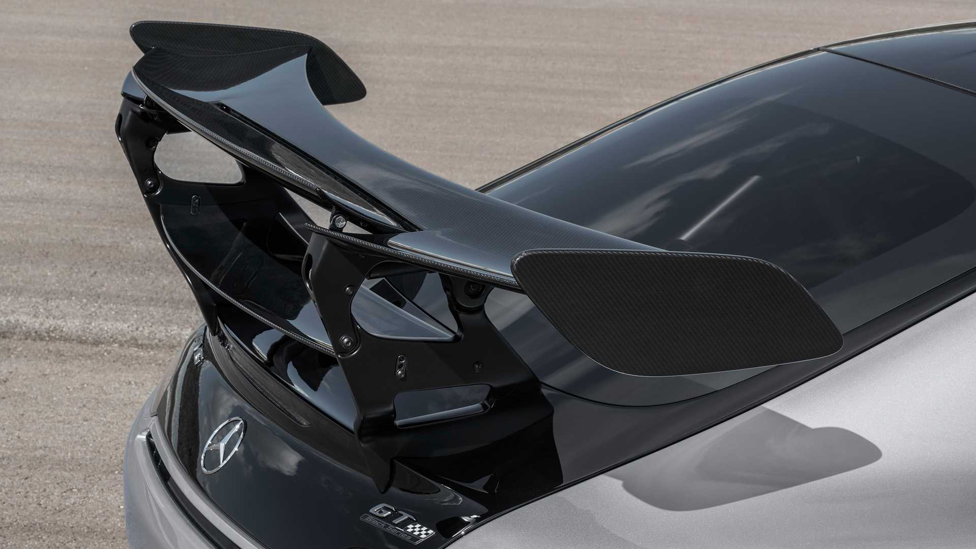 강력한 성능과 함께 외관에도 이 강력한 성능에 맞춰 공기역학 개선과 다운포스를 만들어줄 에어로 파츠들을 적용, AMG GT3, GT4 레이스카 같은 모습을 보여준다. 프런트 그릴의 사이즈는 더 넓고 크게 바뀌었고, 앞 범퍼 하단에는 수동으로 조절이 가능한 카본 스플리터를 더했다. 후드와 앞 펜더 상단에는 엔진 쿨링과 공기역학 효율을 도와줄 커다란 에어벤트를 뚫었고, 측면에는 카본 사이드 스커트와 뒤 범퍼 하단에도 풀 카본 디퓨저를, 트렁크 리드에는 2단 구조의 대형 윙을 달았다. 리어 윙의 상단 중앙은 전동식으로 20도까지 조정이 되고, 양쪽 끝부분도 수동으로 조정이 가능해 다운포스 설정이 가능하다.