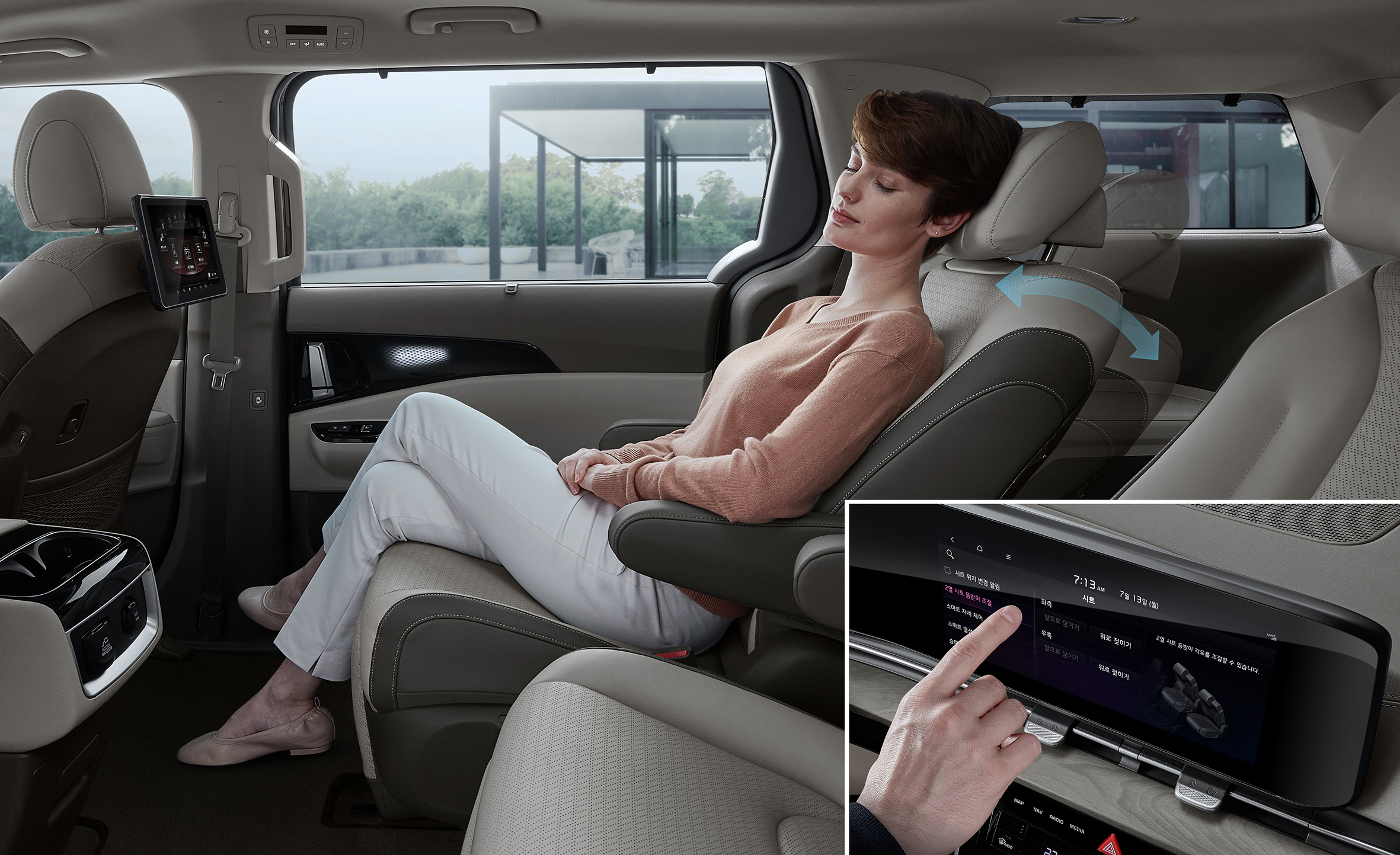 7인승 모델은 프리미엄 릴렉션 시트와 통풍/열선 시트가 기본으로 적용되어 2열 승객에게 더 쾌적한 환경을 제공한다.