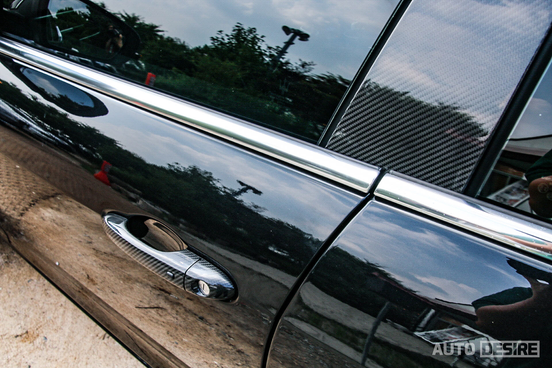 뒷모습에서는 범퍼 하단의 원형 쿼드팁 머플러와 함께 트렁크 리드 상단에 카본 스포일러를 더해 전체적인 분위기를 전후 모든 곳에서 이어가고 있고, 휠 안쪽으로는 빨갛게 칠한 브레이크 캘리퍼가 검은색 차체와 강한 대비, 적절한 조화를 이룬다.