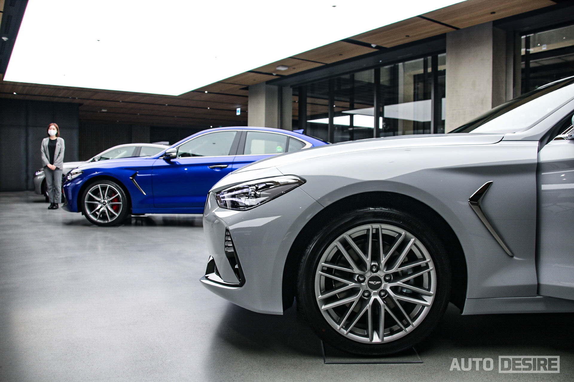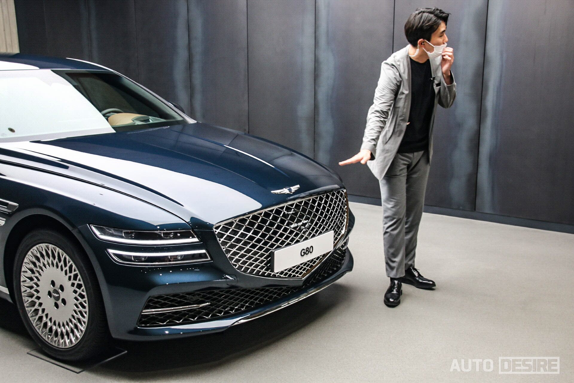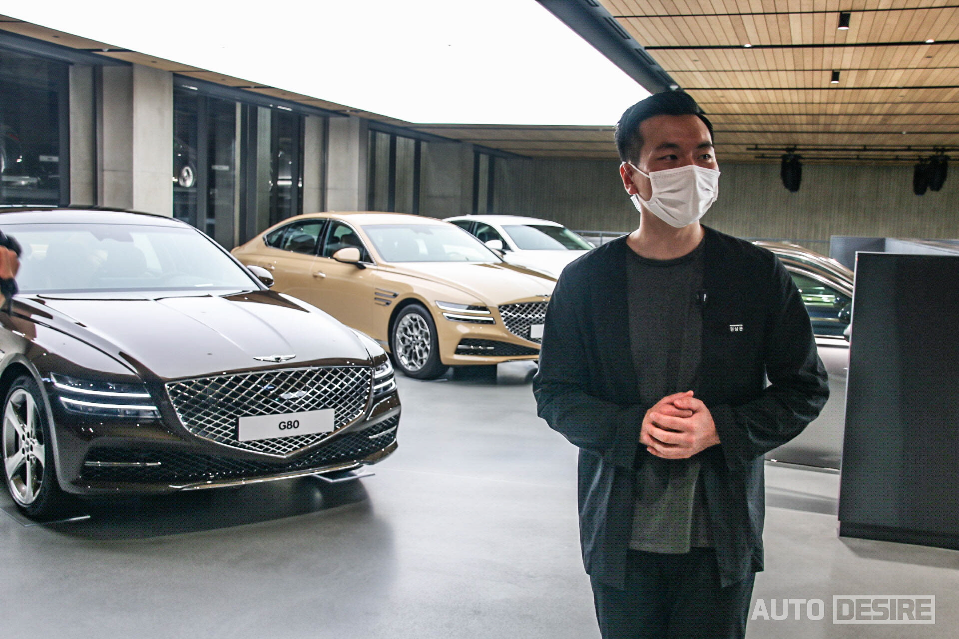 이어 3층에는 제네시스 브랜드의 시작을 알린 모델이자, 제네시스 브랜드 내 가장 큰 볼륨 모델 중 하나인 G80이 역시 각기 다른 엔진/사양들로 태즈먼 블루, 비크 블랙, 핀도스 그린, 우유니 화이트, 베르비에 화이트, 사하라 베이지, 세도나 브라운까지 총 7개가 전시되어 있으며 전시 차량을 통해서도 사이즈별로 각기 다른 디자인의 휠과 다른 가죽 색상과 우드 내장재가 적용된 것을 확인할 수 있는 것은 물론,