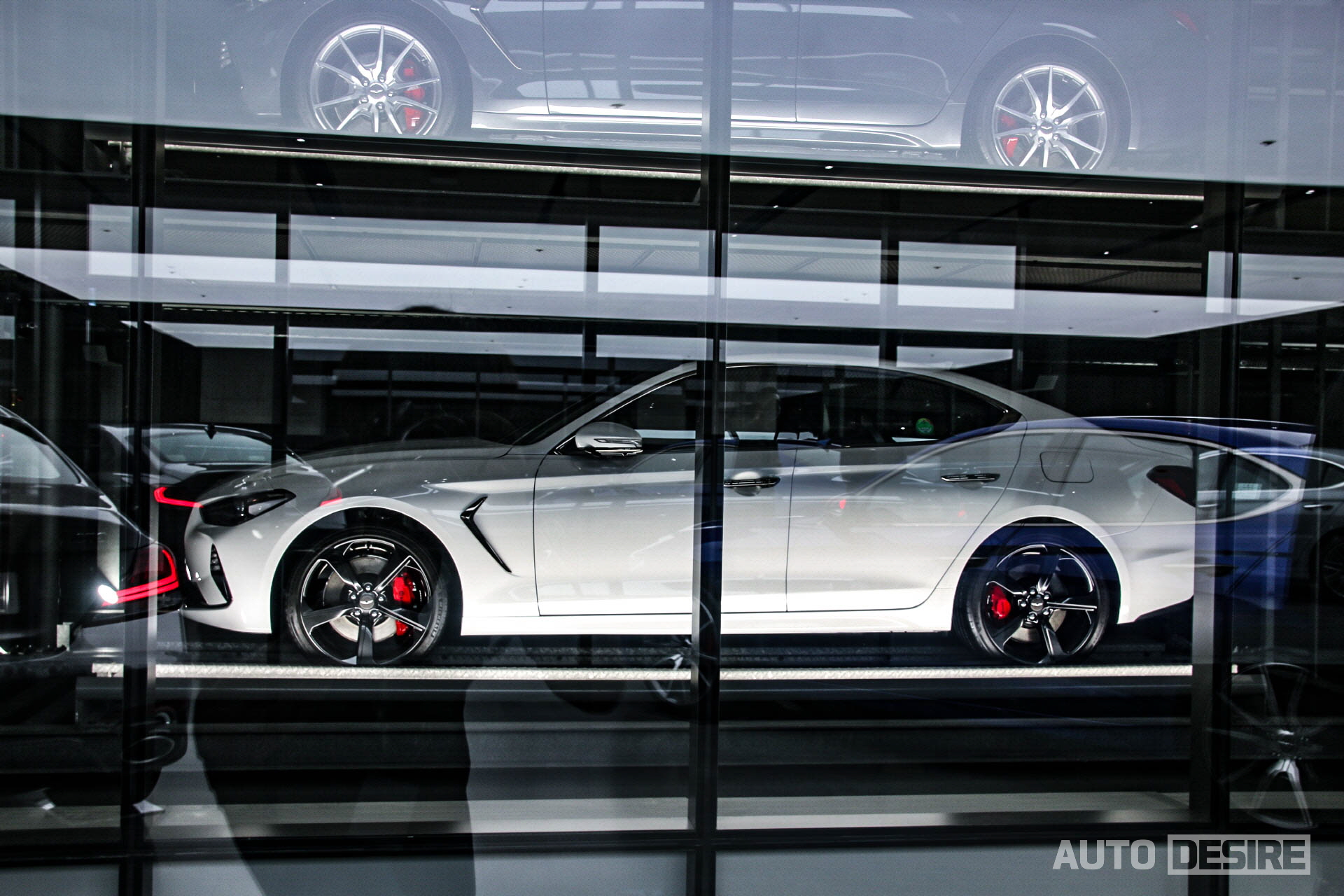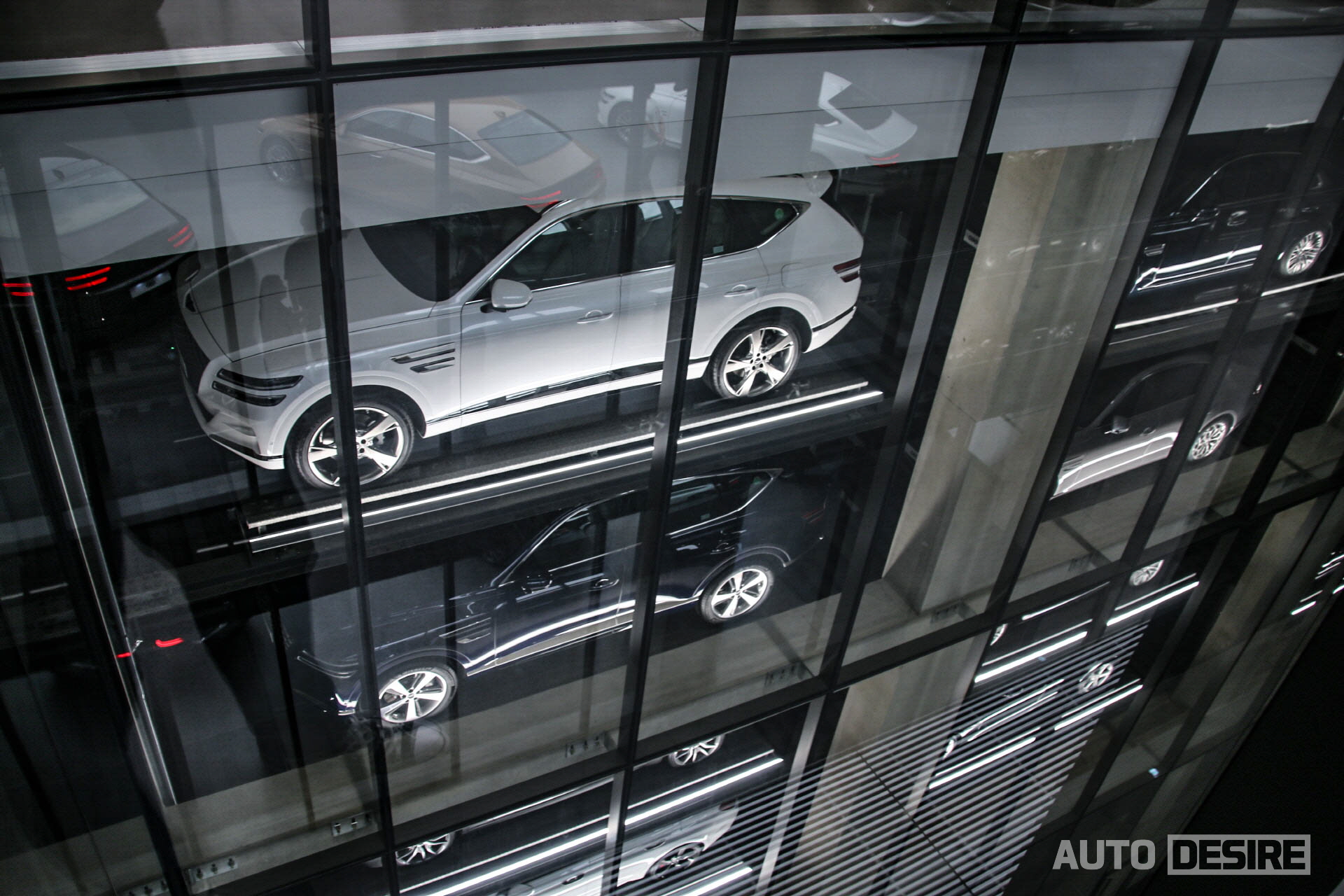 혹시나 전시 공간 내에 원하는 색상과 사양의 제네시스 모델이 없는 경우에는 옆쪽 유리 벽면, 카 타워 내에 전시되어 있는 차량으로 실물을 살펴볼 수도 있고, 원하는 경우에는 전문 큐레이터와 함께 설명을 들으면서 시승 프로그램까지 함께 체험할 수 있다. 큐레이터의 안내에 따르면 카 타워 내의 차량은 절반은 전시 및 시승 차량, 절반은 고객 출고 대기 차량으로 구성해 출고 차량은 사전 검수 후 현장에 고객이 방문했을 때 리프트로 내려 차량 인도를 해준다고 한다.