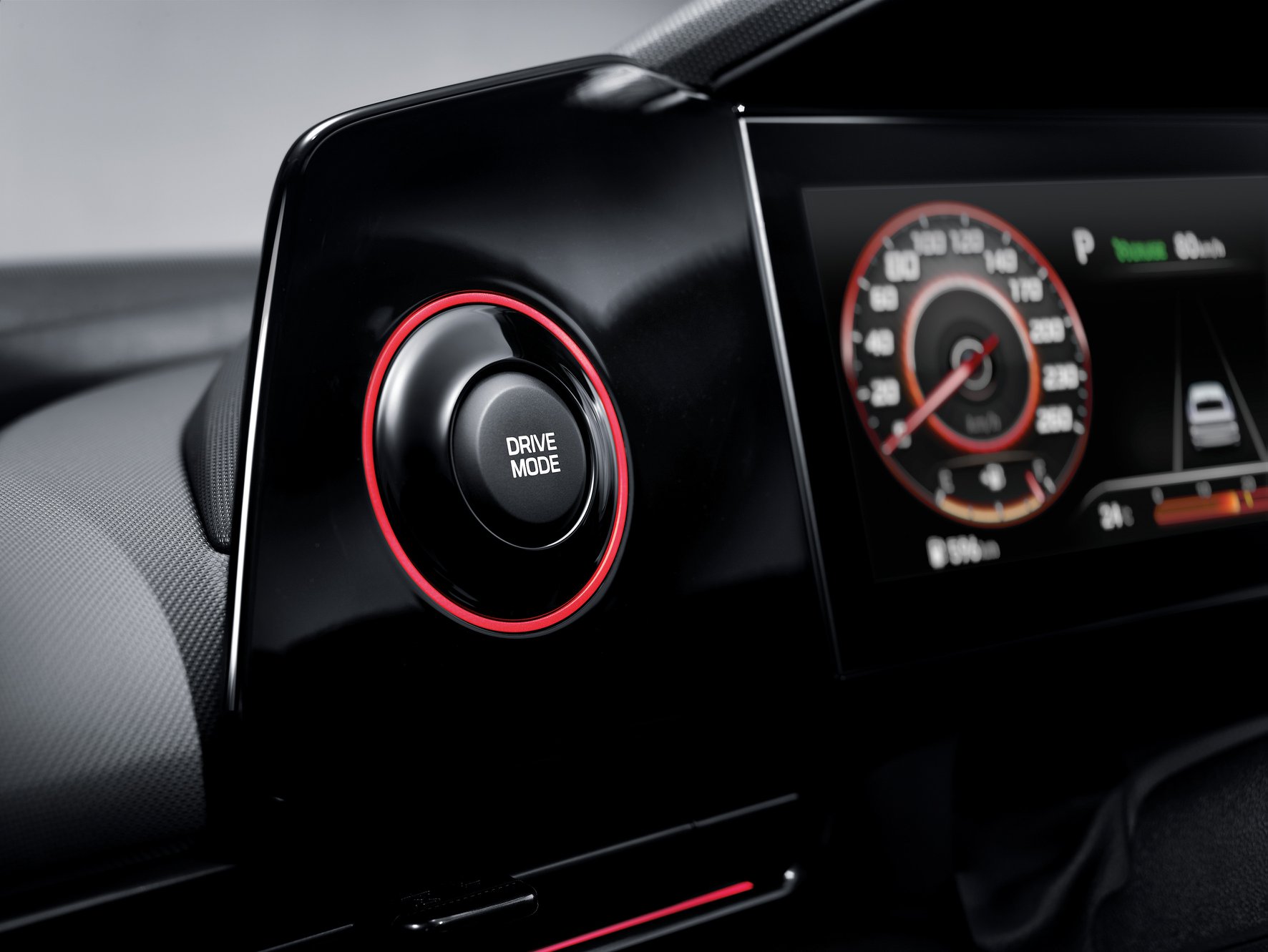 실내에는 i30 N 라인과 동일하게 N line 전용 디자인에 타공 펀칭이 들어간 3-스포크 스티어링 휠과 레드 포인트를 더한 기어 노브, 메탈 페달과 풋 레스트를 적용했고, 시트는 사이드 볼스터 사이즈를 살짝 더 키우고 레드 스티치와 N 로고 펀칭이 적용되었다. 실내의 전체적인 색상은 헤드라이너까지 포함해 블랙으로 적용되고, 기존 올 뉴 아반떼에서 비어있던 계기판 좌측에 통합 주행 모드 버튼(DCT 전용)이 자리 잡았다. 또한 10.25인치 디지털 클러스터는 1.6 가솔린 모델과 동일하지만, 아날로그 계기판은 N 라인을 위해 전용 디자인을 적용했다.