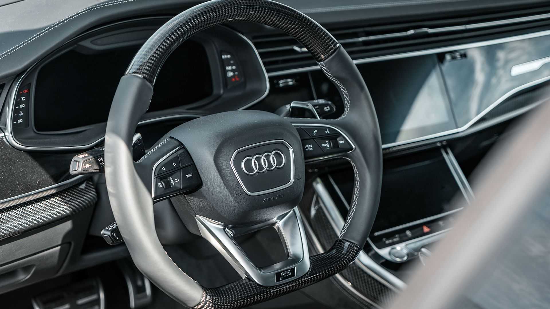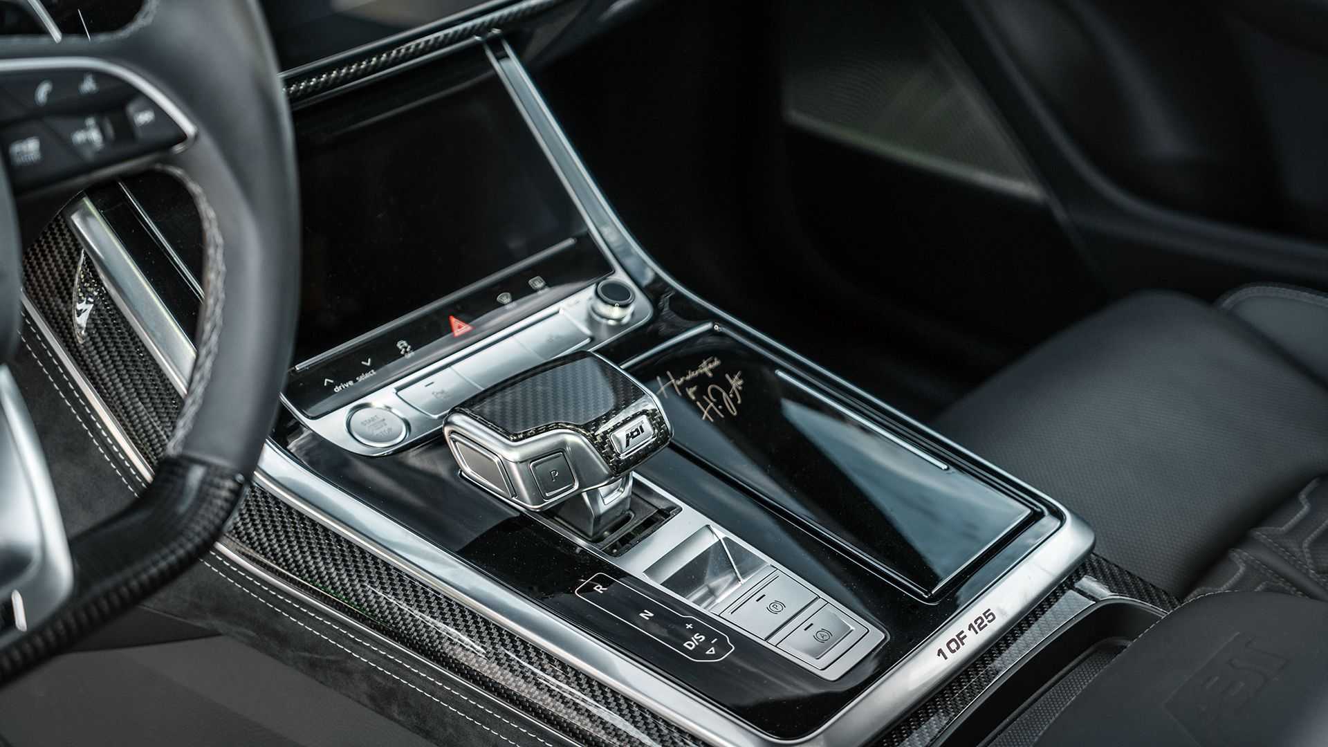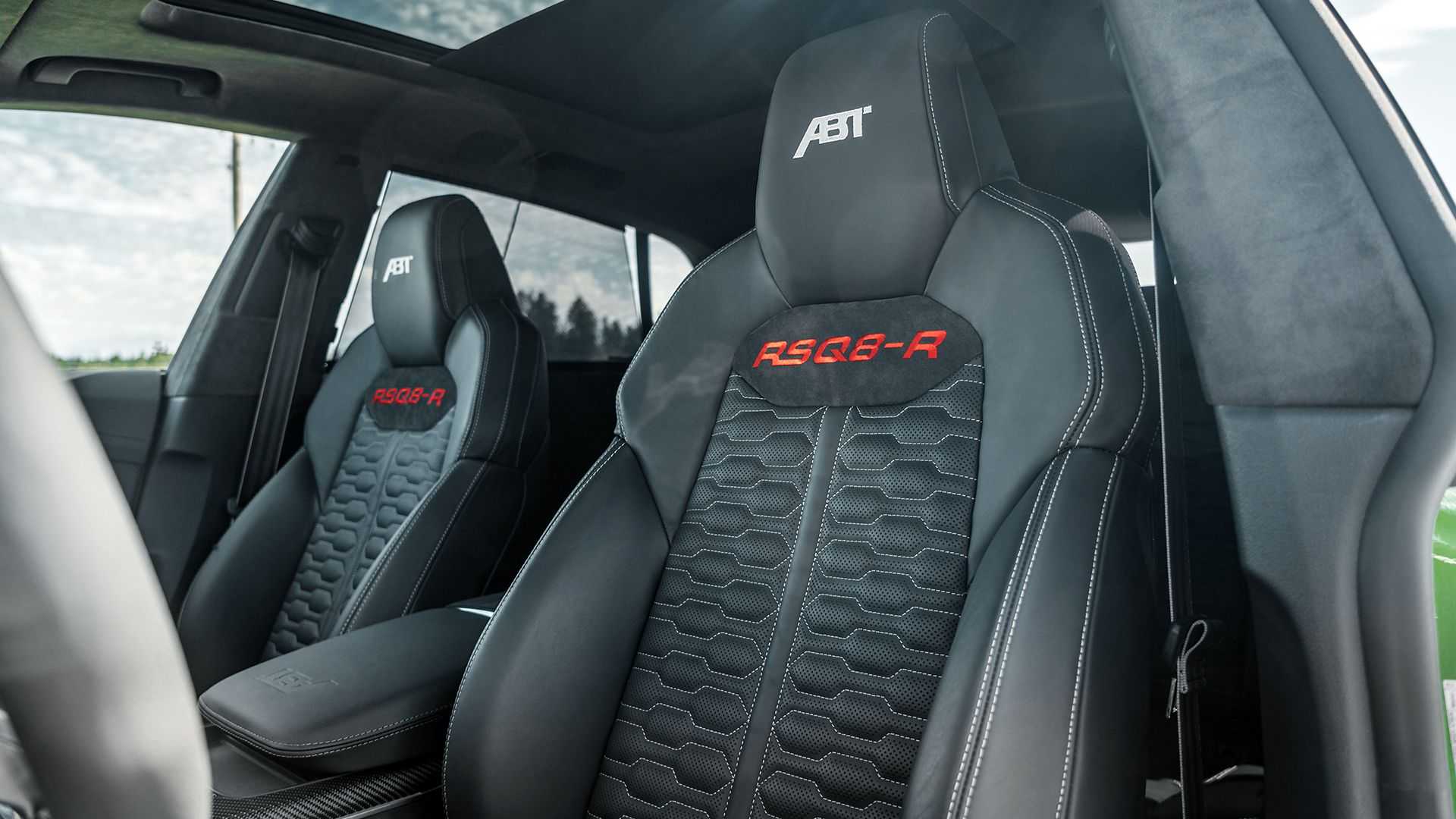 외부의 에어로 파츠들로는 성이 안 찼는지 스티어링 휠의 림 상하단과 센터콘솔, 기어 노브, 시트 측면 마감재까지 모두 카본 섬유로 바꿨으며, 시트 등받이는 빨간 RSQ8-R 자수를, 헤드레스트에는 ABT 로고를 자수로 박았다. 도어 실에는 한정판답게 125대 중 한 대, '1 of 125' 문구를 새겼다.