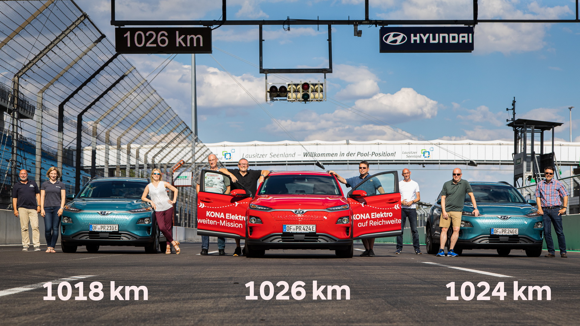 이번 기록은 현대자동차가 독일에서 7월 22일~24일 3일 간 진행한 시험 주행에서 나온 결과로 시험주행에 참가한 총 3대의 코나 일렉트릭은 각각 1,026km, 1,024.1km, 1,018.7km의 주행거리를 달성했고 주행 중 기록한 연비는 1kWh당 16km로 코나 일렉트릭의 국내 기준 공인 연비인 5.6kWh를 훌쩍 뛰어넘은 기록이다.