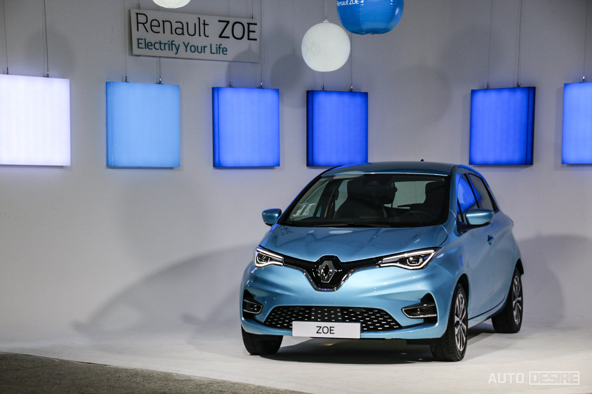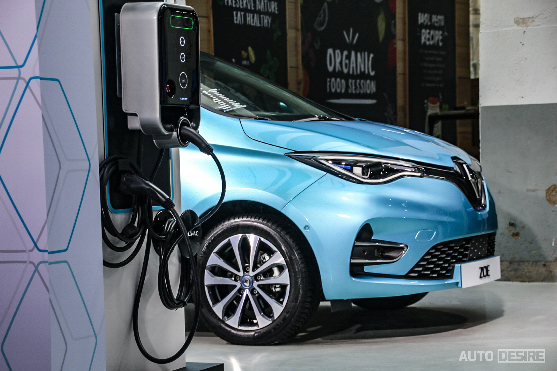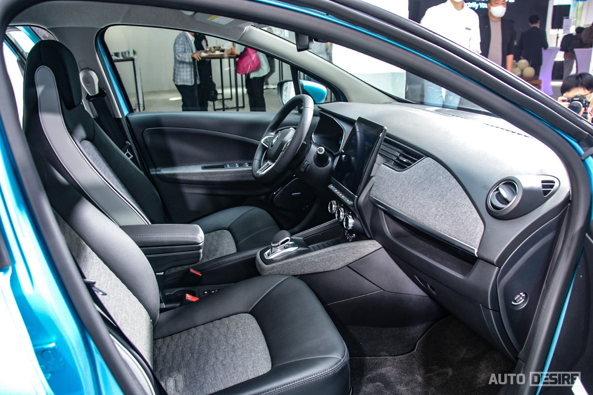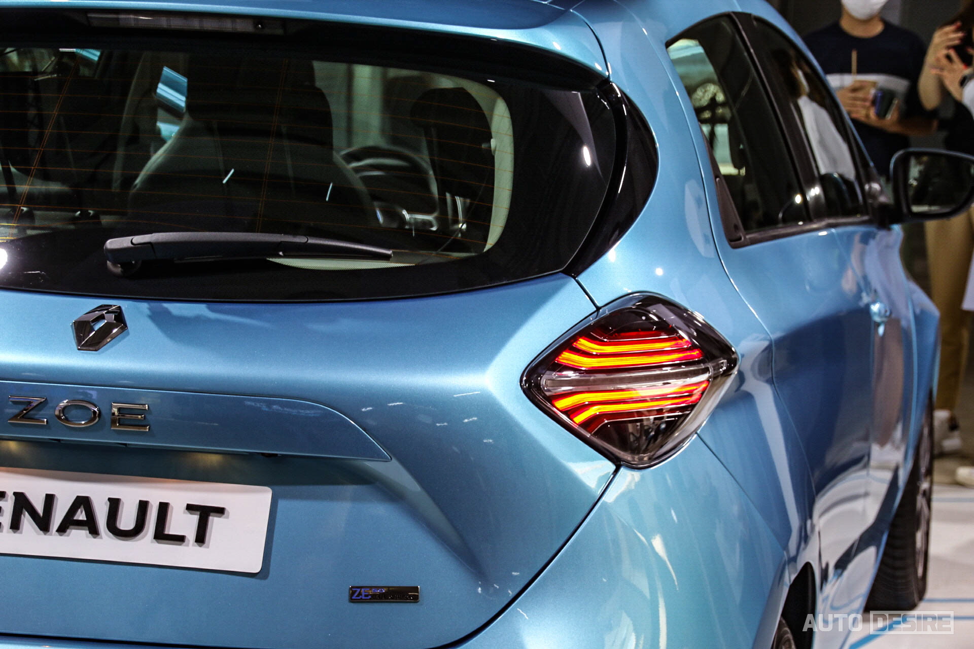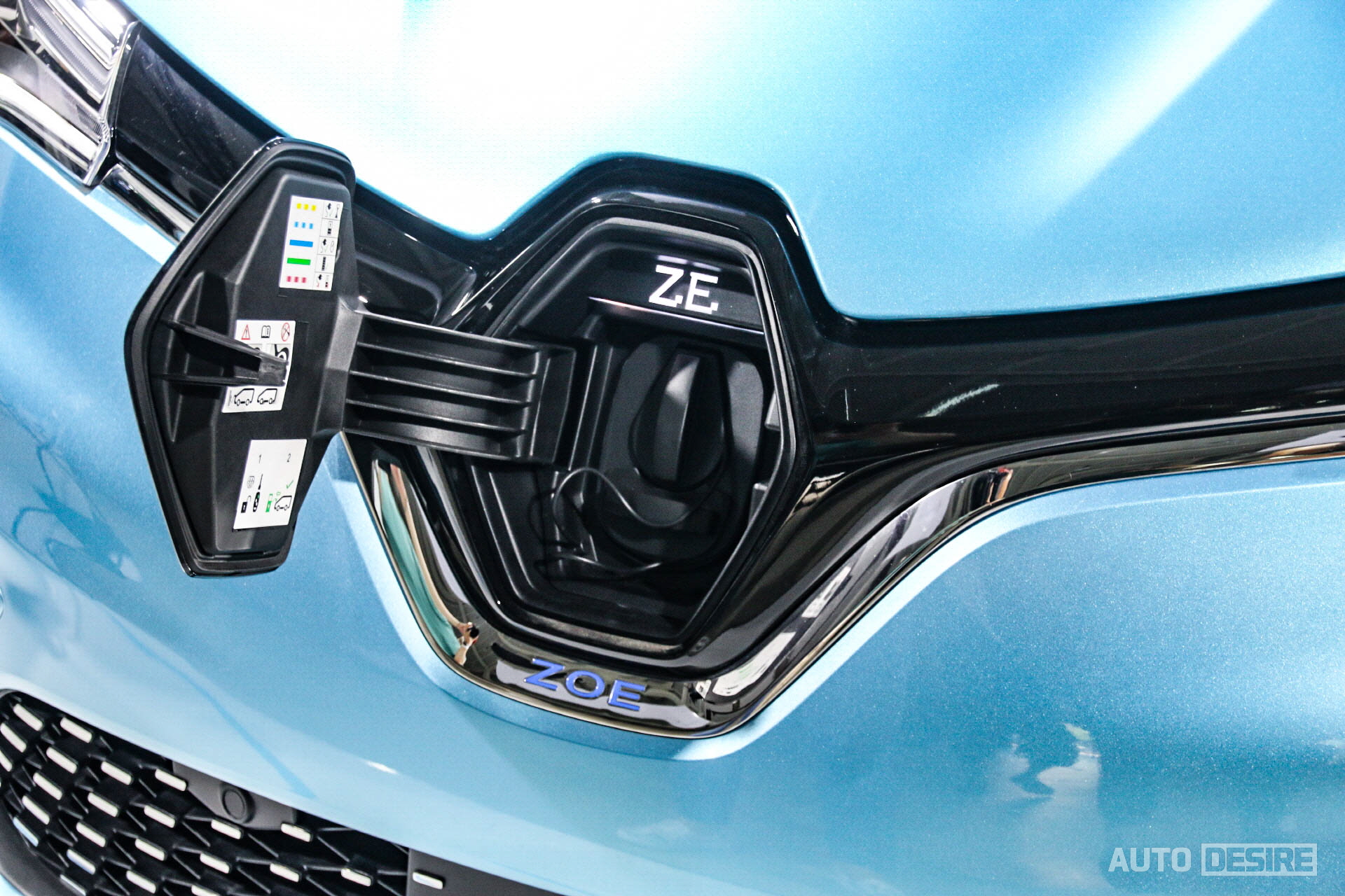 실물로는 처음으로 만나는 새로운 전기차 르노 조에, 하지만 르노만의 아이덴티티가 담긴 디자인으로 친숙함이 느껴지며 전체적으로는 앙증맞고 귀여운듯하면서도 전면부에서는 강렬하고 날렵한 인상이 느껴지기도 한다. 전시 차량들은 인텐스 에코 트림에 세라돈 블루 외장 색상이 적용되어 있는데 눈에 띄는 밝은 파란색이 친환경차에 잘 어울리며 청량감을 느끼게 해주는 것 같다.