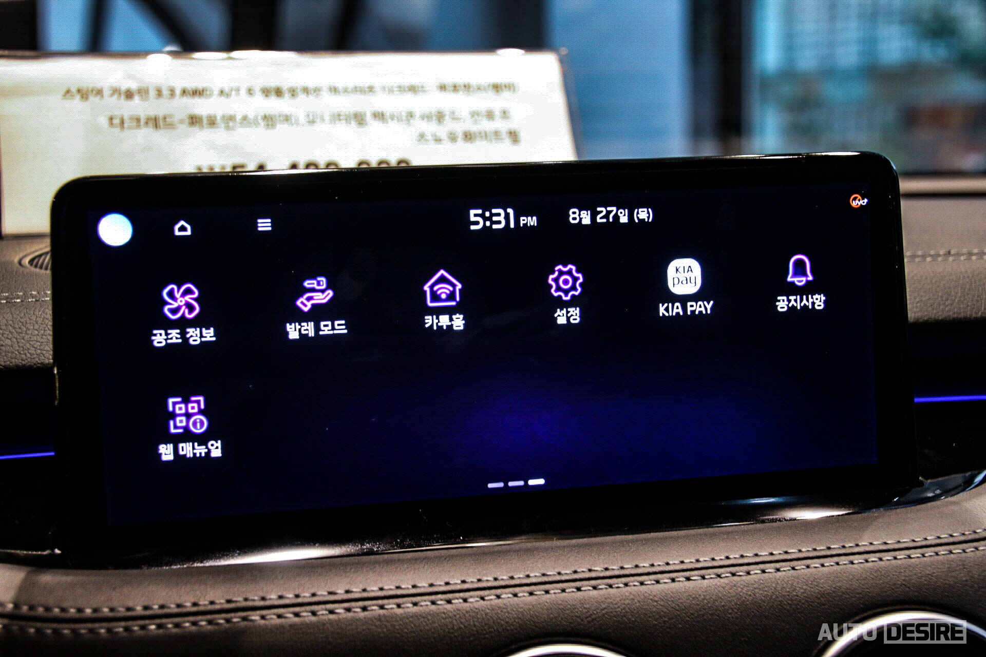 일단 센터패시아 상단의 내비게이션 디스플레이는 크기는 더 커지고, 베젤은 얇아져 스타일도 한층 더 깔끔해진 10.25인치 내비게이션으로 변경되었고, 인포테인먼트 시스템의 인터페이스와 그래픽도 새롭게 변경, 기아 페이와 카투홈, 리모트 360도 뷰 등의 편의 사양들도 더 더해져서 편의성이 높아졌다고 한다. 다만 기능들을 전시차로 직접 시연해볼 수는 없었고, 커진 사이즈 덕에 시인성이 한층 좋아지고, 터치 반응이나 조작성이 더 좋아졌다는 건 알 수 있었다.