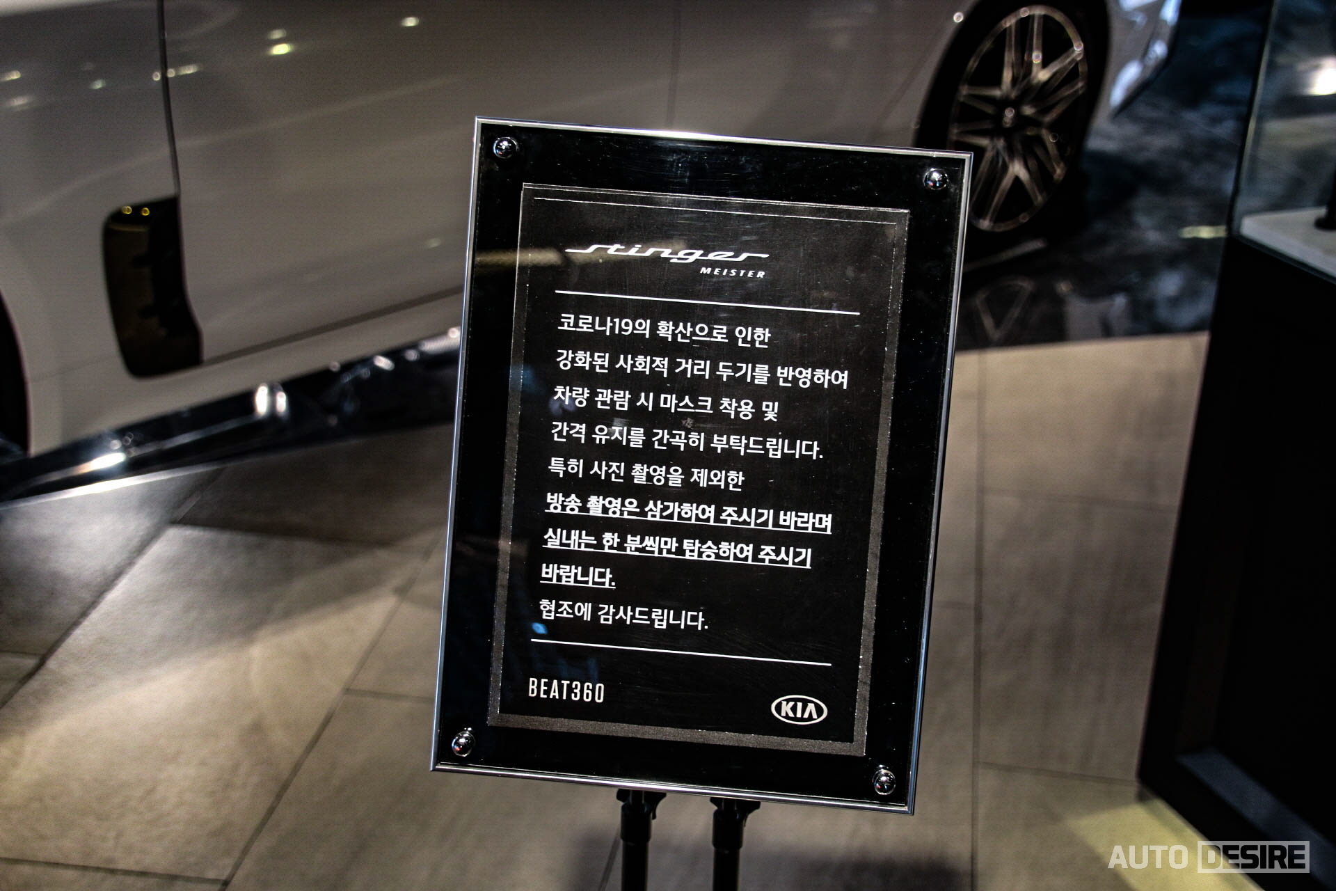 자, 우선 최근 수도권 지역을 중심으로 코로나19가 다시 대유행이 되면서 BEAT 360 역시 방역에 더 만전을 기하고 있는 모습. 출입하면서 열화상 카메라와 체온계로 발열 체크를 하고 QR코드를 통해 방문 정보도 입력을 하고 있으며, 출입 전 손 소독은 물론 전시 공간 내 곳곳에도 소독제를 비치해두고 있지만 좀 더 예방을 두기 위해 차량 관람 시 여럿이 동시에 차량을 탑승하거나, 장시간 머무르면서 말을 많이 해야 하는 영상 촬영은 삼가주길 권고하고 있다. 필자 역시도 잠시 살펴보고 사진만 빠르게 촬영하고 돌아왔으며, 아쉽지만 차후 시승차가 제공되면 그때 영상으로 전하도록 하겠다.