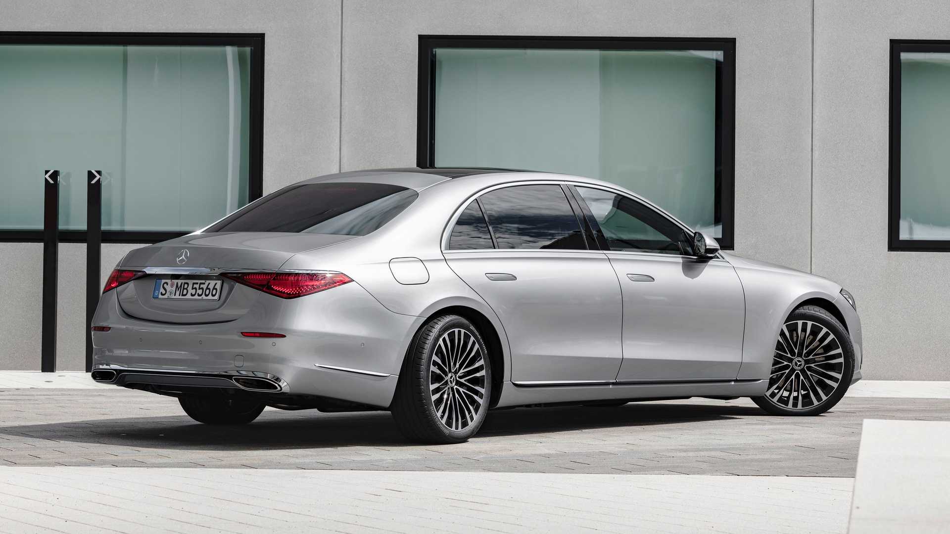 메르세데스-벤츠의 다른 신형 모델, 페이스리프트 모델에서 보여줬던 새로운 S클래스 역시, 메르세데스-벤츠의 최신 패밀리룩이 적용되며 프런트 그릴이 이전보다 사이즈가 더 커지고 각이 진 형태로 변경된 것이 눈에 뜨인다. 후드의 길이는 더 길어졌고, 휠 사이즈는 21인치까지도 적용되며 C필러는 물 흐르듯 자연스럽게 트렁크 리드로 이어지는 라인을 보여준다. 그리고 정말 오랜만에 S클래스의 테일램프가 다시 수평형으로 복귀, 역삼각 형태의 각진 테일램프를 적용하고 크롬 라인으로 좌우 램프 간 사이를 이었다. 도어 핸들은 도어 자체에 숨겨지는 히든 타입 플러시 도어 핸들로 적용하고, 공기저항 계수를 0.22cd까지 줄여 테슬라 모델 S의 0.24보다도 더 극단적인 공기저항 계수를 달성했다.