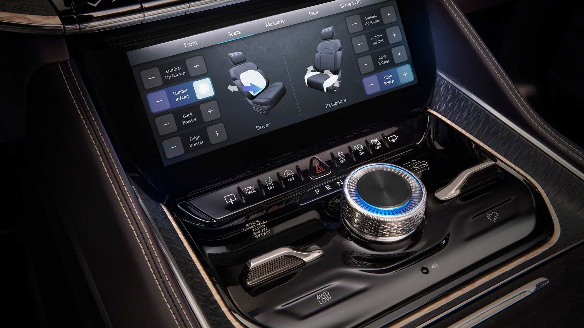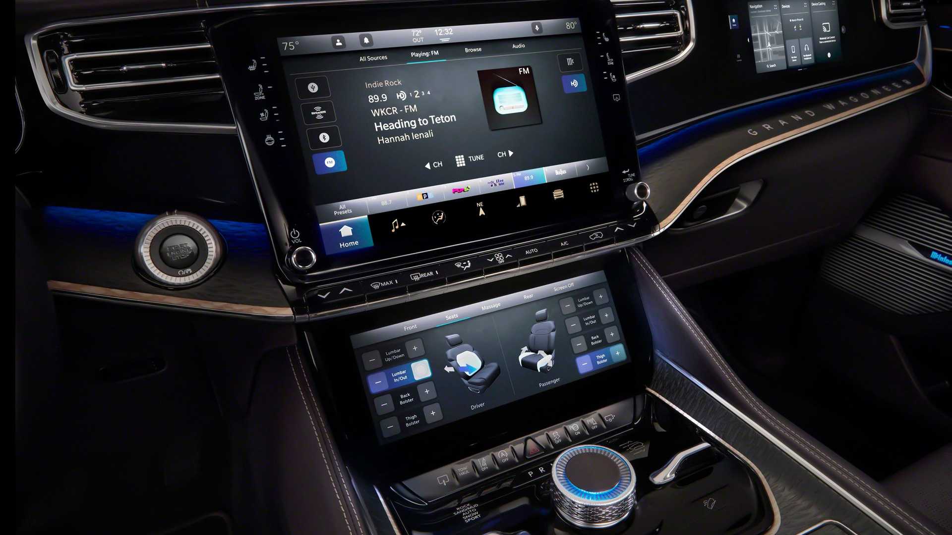센터패시아에는 상단에 12.1인치 디스플레이가 적용되어 내비게이션과 U커넥트 5 인포테인먼트 시스템을 조작하게 되고, 하단에도 '컴포트 디스플레이'라 부르는 10.3인치 터치스크린을 적용해 시트의 위치 조정과 마사지 기능을 사용할 수 있다. 반면 공조 컨트롤러와 오디오 볼륨 조정 버튼과 몇몇 주요 버튼들은 물리 버튼을 유지시켰고, 변속 셀렉터는 다이얼 타입의 전자식 변속기가 적용된다.