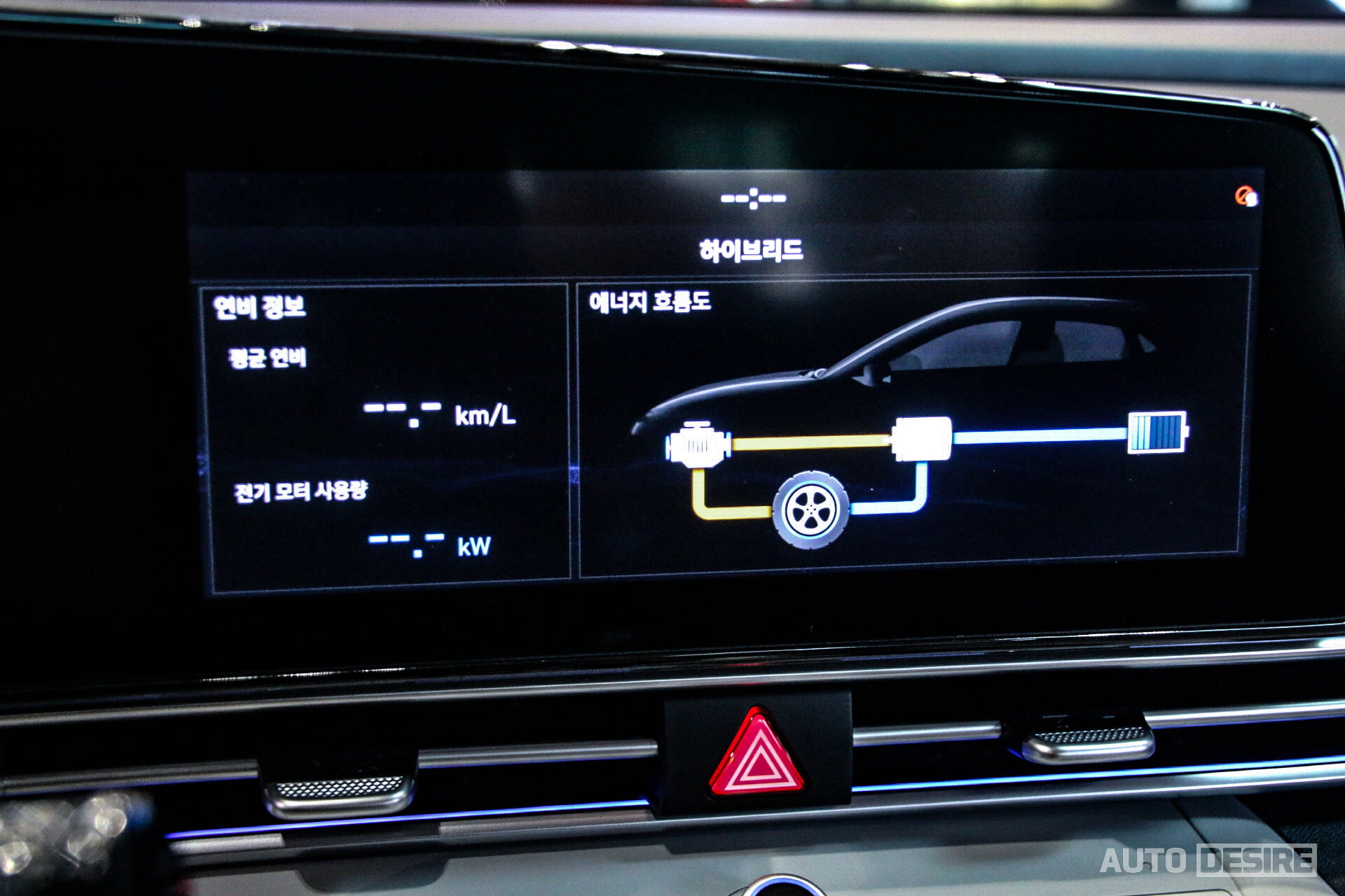 인포테인먼트 시스템의 인터페이스와 그래픽 테마도 가솔린과 동일하되, 하이브리드 전용 메뉴를 추가, 연비 정보와 전기 모터 사용량, 에너지 흐름도 등을 확인할 수 있다.