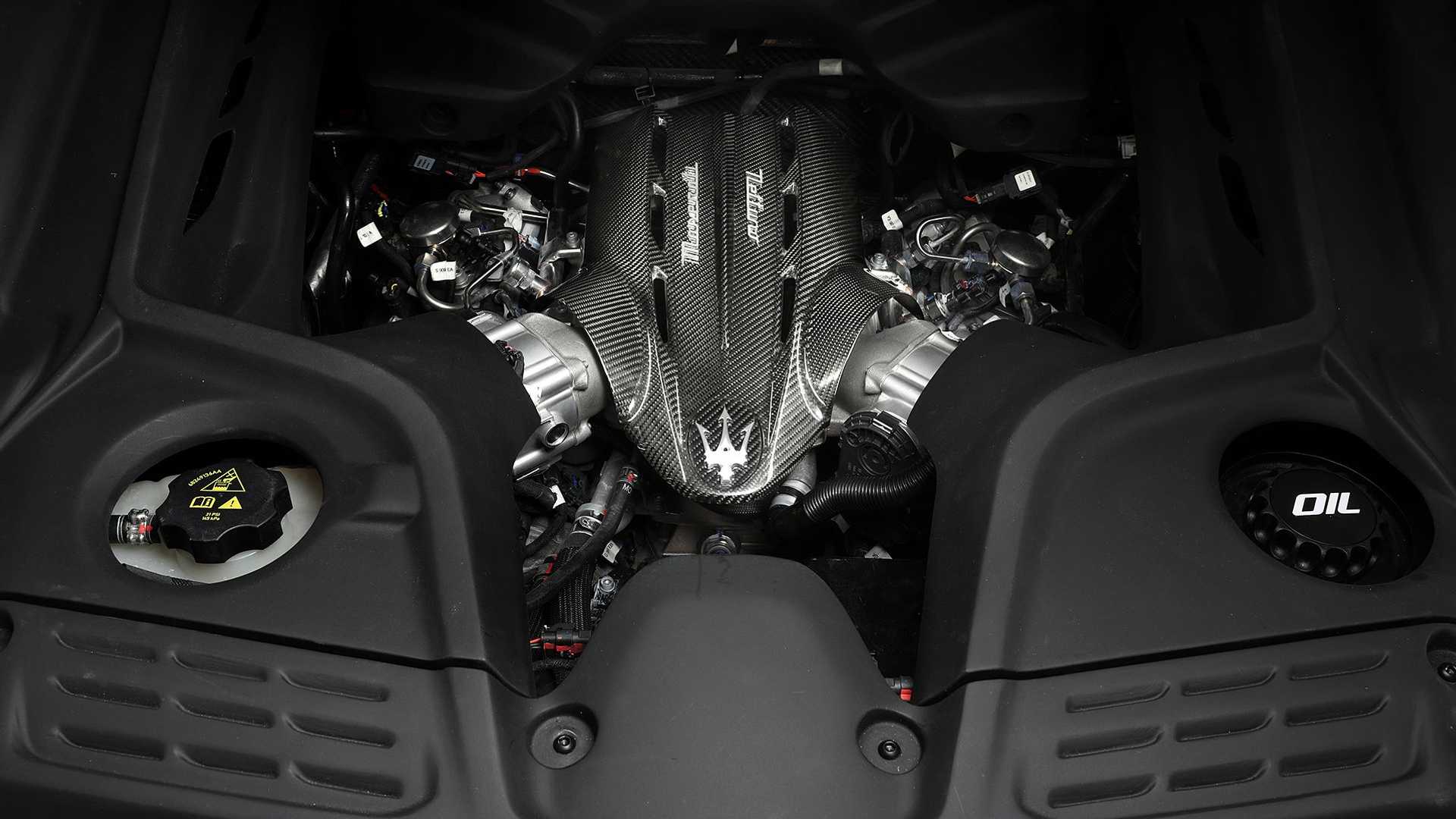 가장 핵심이자 많이 궁금해할 엔진은 V6 3.0리터 트윈 터보 가솔린 엔진으로 최고출력 630마력, 최대토크 74.5kg.m을 발휘하며 변속기는 8단 듀얼 클러치 변속기를 사용, 정지 상태에서 100km/h까지 가속하는데 단 2.9초가 소요되며 최고 속도는 323km/h까지 내는 등 슈퍼카라 부르기에 손색없는 강력한 성능을 발휘한다. 네튜노라 불리는 이 새 V6 트윈터보 엔진은 페라리나 알파로메오의 도움 없이, 마세라티가 독자적으로 개발한 엔진으로 트윈 연소 시스템으로 출력을 끌어올렸다고 한다. 마력 당 중량 비율은 2.3kg 정도이며 경량 모노코크 섀시로 차량 무게도 1,500kg 정도로 유지했다.