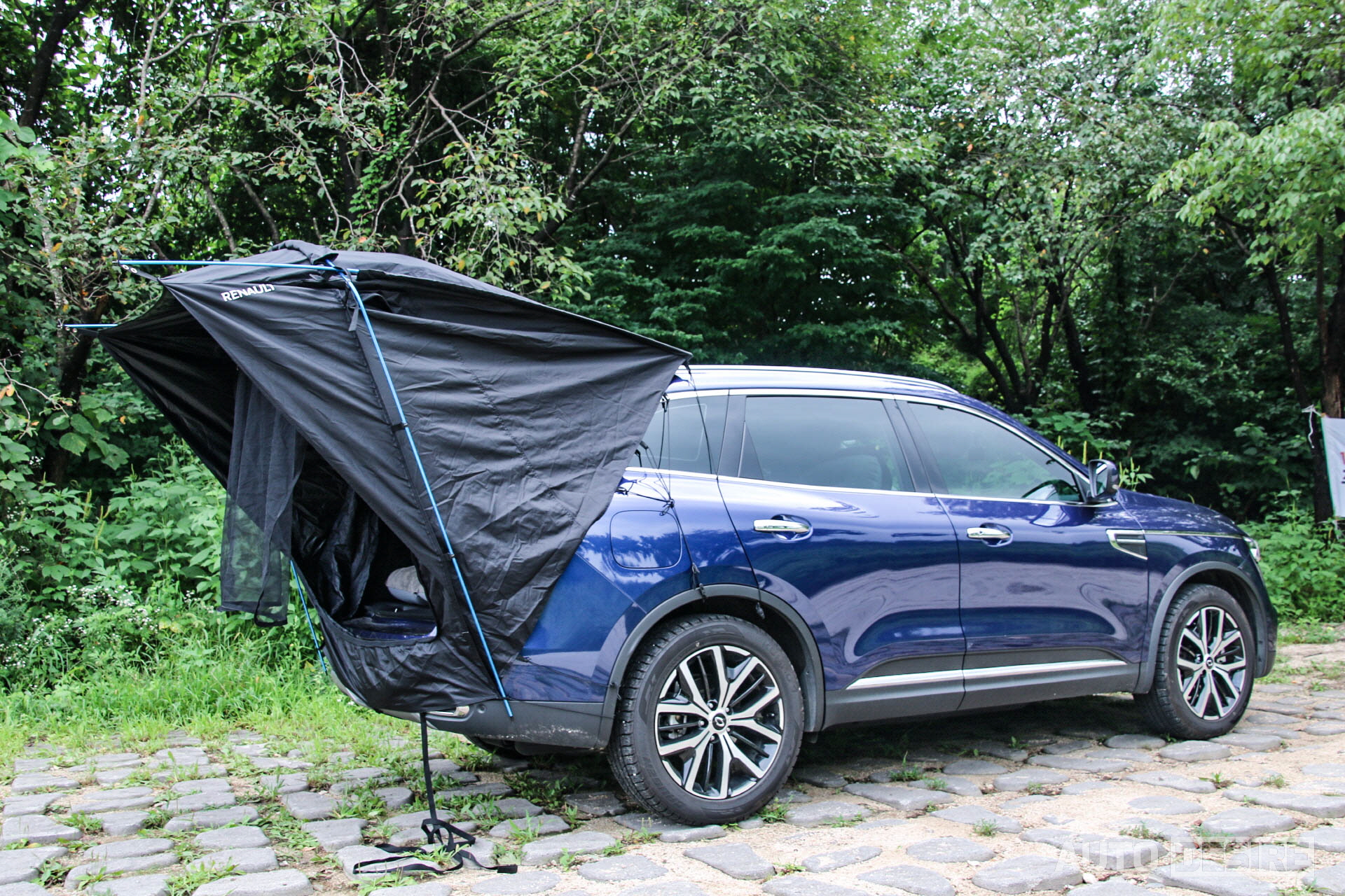 잠깐의 당일치기 여행이었기에 더 챙겨오기로 했던 캠핑 용품(이렇게 또 1년 동안 쓸 일이 없을 것 같은...)들은 두고 오고, 르노삼성 측에서 제공해 준 에어매트와 테일게이트에 설치하는 차박용 텐트만 챙겨서 왔는데,