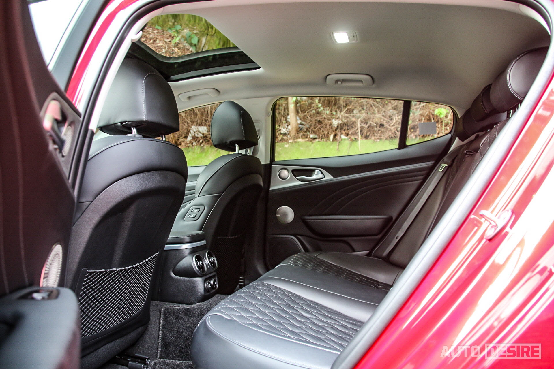 기아 스팅어 마이스터 2.5 가솔린 터보 마스터즈, 색상 하이크로마 레드, 실내 블랙 인테리어