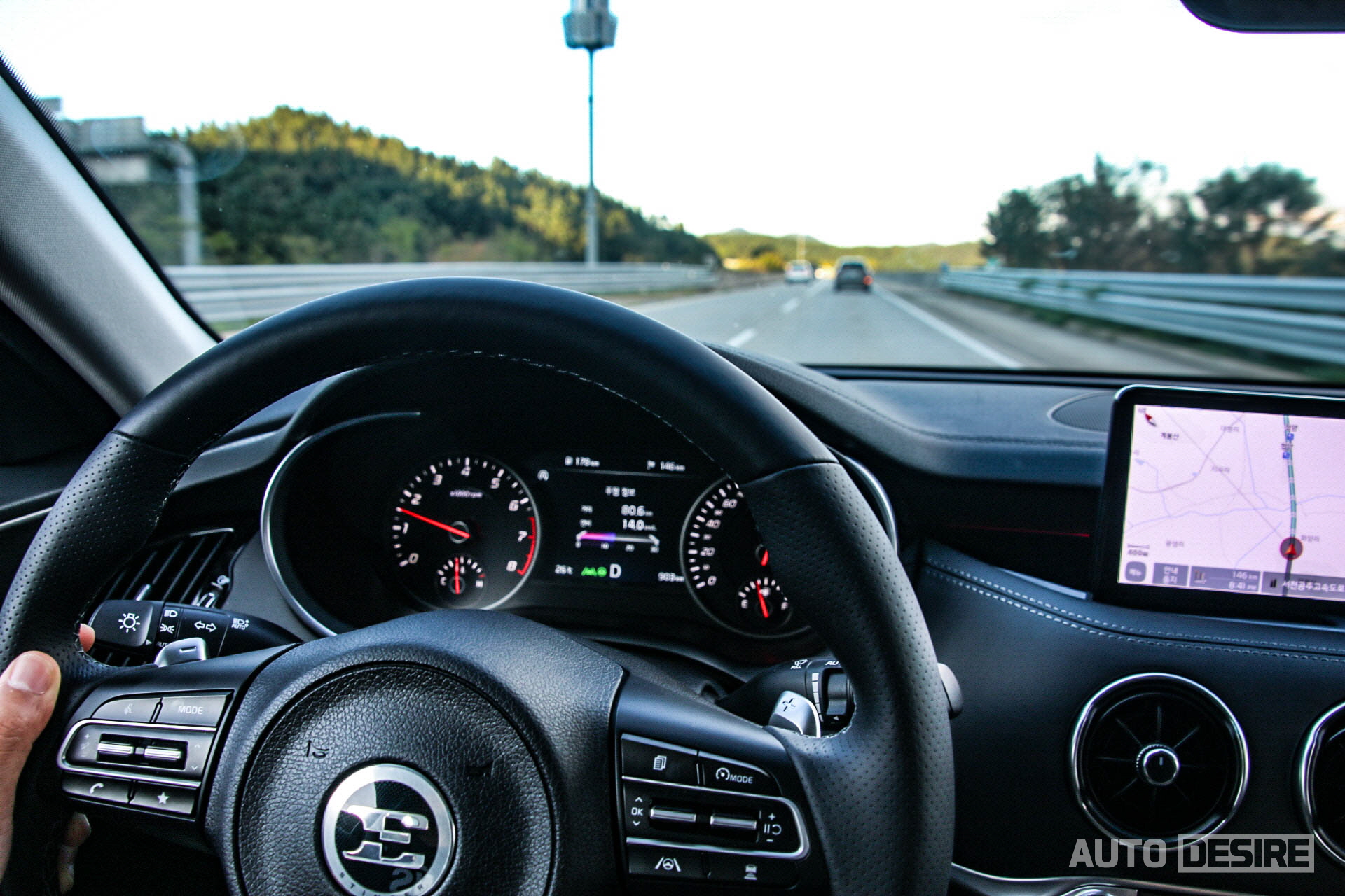 사실 기존 스팅어를 3.3 GT만 시승해봤기에 2.0 터보와 직접적인 비교는 할 수 없었지만, 고속도로 주행 중에 다른 차들을 추월할 때도, 급가속을 해볼 때에도 출력에 대해 모자라다 느낄 부분은 없었고 충분히 빠르다는 느낌을 받았다. 다만 가속 자체가 폭발적으로 뻥 터지면서 나간다기보다는 부드럽게 꾸준히 쭉쭉 밀어 나가는 느낌을 주고, 고속주행에서 차의 안정감이 좋다 보니 실제 속도보다 상대적으로 체감되는 속도감이 덜한 듯했다. 다만 'GT' 성향의 차라는 걸 생각하면 이게 어울리는 세팅, 적당한 밸런스라 생각이 들기도 하고, 더 짜릿한 퍼포먼스를 원하는 이들을 위해 3.3 터보 GT가 있으니 그걸 선택하면 되겠다.