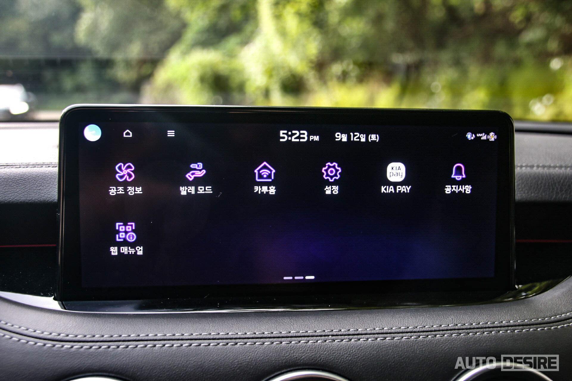 기아자동차의 최신 인포테인먼트 시스템은 신규 그래픽, 보라색 테마, 새로운 메뉴 배열이 직관성도 높아지고 시각적으로도 고급스러워졌으며 화면이 커져서 시인성도 더 좋아졌다. 기능적으로는 기아 페이, 발레 모드, 카투홈, 리모트 360도 뷰 등이 추가되었는데, 빌트인 캠은 빠진 것이 조금 아쉽게 느껴진다. 서라운드 뷰 카메라의 화질은 깔끔해서 보기 좋은 편.